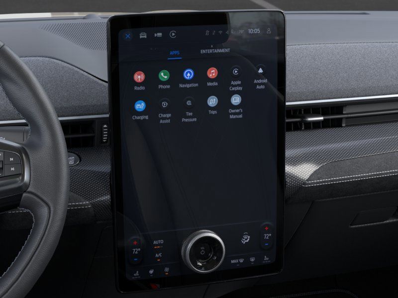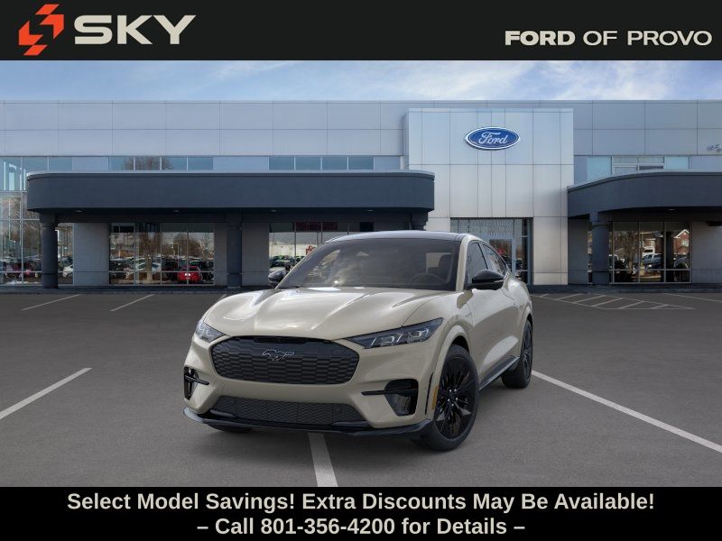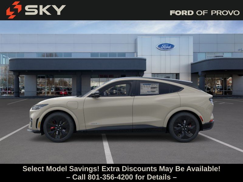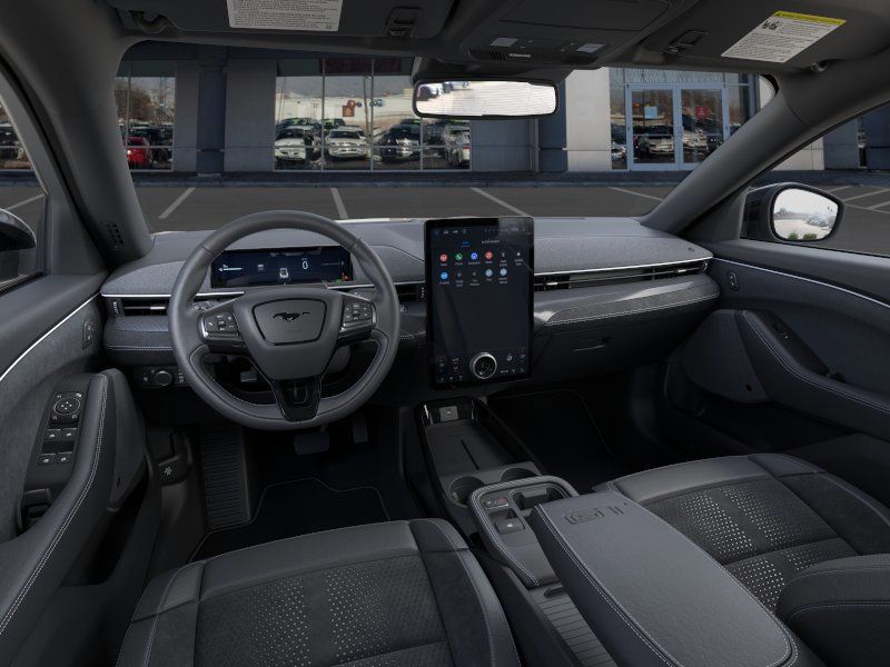 This 2025 Desert Sand Ford Mustang Mach-E GT AWD is well equipped and includes these features and benefits: 10 Speakers, 4-Wheel Disc Brakes, ABS brakes, Adaptive suspension, Air Conditioning, Alloy wheels, AM/FM radio: SiriusXM with 360L, Apple CarPlay/Android Auto, Auto High-beam Headlights, Auto-dimming Rear-View mirror, Automatic temperature control, Brake assist, Bumpers: body-color, Compass, Delay-off headlights, Driver door bin, Driver vanity mirror, Dual front impact airbags, Dual front side impact airbags, Electronic Stability Control, Emergency communication system: 911 Assist, Exterior Parking Camera Rear, Four wheel independent suspension, Front anti-roll bar, Front Bucket Seats, Front Center Armrest, Front dual zone A/C, Front reading lights, Fully automatic headlights, Garage door transmitter, Heated door mirrors, Heated front seats, Heated Perforated ActiveX Performance Seats, Heated steering wheel, Illuminated entry, Knee airbag, Low tire pressure warning, Memory seat, Navigation system: Connected Navigation, Occupant sensing airbag, Outside temperature display, Overhead airbag, Overhead console, Panic alarm, Passenger door bin, Passenger vanity mirror, Power door mirrors, Power driver seat, Power Liftgate, Power passenger seat, Power steering, Power windows, Radio data system, Radio: B&O Sound System by Bang & Olufsen, Rain sensing wipers, Rear anti-roll bar, Rear seat center armrest, Rear side impact airbag, Rear window defroster, Rear window wiper, Remote keyless entry, Security system, SiriusXM w/360L, Speed control, Speed-sensing steering, Speed-Sensitive Wipers, Split folding rear seat, Spoiler, Steering wheel mounted audio controls, SYNC 4A w/Enhanced Voice Recognition, Telescoping steering wheel, Tilt steering wheel, Traction control, Trip computer, Turn signal indicator mirrors, Variably intermittent wipers, and Wheels: 20" Monochromatic High Gloss Black-Painted.