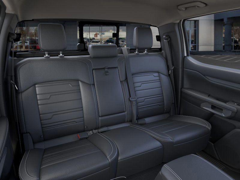 This 2025 Oxford White Ford Ranger Lariat 4WD is well equipped and includes these features and benefits: Equipment Group 500A Standard, FX4 Off-Road Package (FX4 Off-Road Box Decal, FX4 Selectable Drive Modes, Off-Road Screen in Center Stack, Off-Road Tuned Shocks, and Trail Control), Sport Appearance Package (Gray Painted Center Bar & Grille Surround, Gray Painted Front Fascia & Rear Bumper, and Sport Box Decal), 4WD, 10 Speakers, 4-Wheel Disc Brakes, ABS brakes, Air Conditioning, Alloy wheels, AM/FM radio: SiriusXM, Auto High-beam Headlights, Auto-dimming Rear-View mirror, Automatic temperature control, Brake assist, Compass, Delay-off headlights, Driver door bin, Driver vanity mirror, Dual front impact airbags, Dual front side impact airbags, Electronic Stability Control, Emergency communication system: SYNC 4 911 Assist, Front anti-roll bar, Front Bucket Seats, Front Center Armrest, Front dual zone A/C, Front fog lights, Front License Plate Bracket, Front reading lights, Front wheel independent suspension, Fully automatic headlights, Garage door transmitter, Heated door mirrors, Heated front seats, Heated steering wheel, Illuminated entry, Internet access capable: FordPass Connect 4G, Leather Shift Knob, Leather steering wheel, Leather-Trimmed Front Heated Bucket Seats, Low tire pressure warning, Memory seat, Navigation system: Connected Navigation, Occupant sensing airbag, Outside temperature display, Overhead airbag, Overhead console, Panic alarm, Passenger door bin, Passenger vanity mirror, Power door mirrors, Power driver seat, Power passenger seat, Power steering, Power windows, Radio: B&O Sound System by Bang & Olufsen, Rain sensing wipers, Rear reading lights, Rear seat center armrest, Rear step bumper, Rear window defroster, Remote keyless entry, Security system, SiriusXM Satellite Radio, Speed control, Speed-sensing steering, Steering wheel mounted audio controls, SYNC 4A w/Connected Navigation, Telescoping steering wheel, Tilt steering wheel, Traction control, Trip computer, Turn signal indicator mirrors, Variably intermittent wipers, Voltmeter, and Wheels: 18" Machined Aluminum w/Dark Pockets.