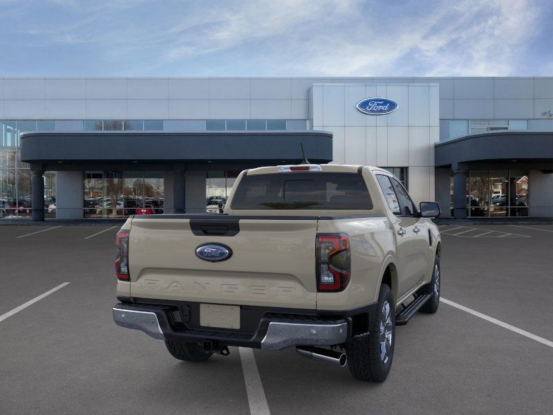 This 2025 Desert Sand Ford Ranger Lariat 4WD is well equipped and includes these features and benefits: Chrome Accent Package (Body Color Painted Front Fascia, Chrome Center Bar & Grille Surround, Chrome Rear Bumper, Painted Body-Color Wheel Lip Molding, and Wheels: 18" Chrome-Like PVD), Equipment Group 500A Standard, Sport Appearance Package (Gray Painted Center Bar & Grille Surround, Gray Painted Front Fascia & Rear Bumper, and Sport Box Decal), Trailer Tow Package (Class IV Trailer Hitch Receiver), 4WD, 10 Speakers, 3.73 Axle Ratio, 4-Wheel Disc Brakes, ABS brakes, Air Conditioning, Alloy wheels, AM/FM radio: SiriusXM, Auto High-beam Headlights, Auto-dimming Rear-View mirror, Automatic temperature control, Black Running Boards, Brake assist, Compass, Delay-off headlights, Driver door bin, Driver vanity mirror, Dual front impact airbags, Dual front side impact airbags, Electronic Stability Control, Emergency communication system: SYNC 4 911 Assist, Front anti-roll bar, Front Bucket Seats, Front Center Armrest, Front dual zone A/C, Front fog lights, Front License Plate Bracket, Front reading lights, Front wheel independent suspension, Fully automatic headlights, Garage door transmitter, Heated door mirrors, Heated front seats, Heated steering wheel, Illuminated entry, Integrated Box Side Step, Internet access capable: FordPass Connect 4G, Leather Shift Knob, Leather steering wheel, Leather-Trimmed Front Heated Bucket Seats, Low tire pressure warning, Memory seat, Navigation system: Connected Navigation, Occupant sensing airbag, Outside temperature display, Overhead airbag, Overhead console, Panic alarm, Passenger door bin, Passenger vanity mirror, Power door mirrors, Power driver seat, Power passenger seat, Power steering, Power windows, Radio: B&O Sound System by Bang & Olufsen, Rain sensing wipers, Rear reading lights, Rear seat center armrest, Rear step bumper, Rear window defroster, Remote keyless entry, Security system, SiriusXM Satellite Radio, Speed control, Speed-sensing steering, Steering wheel mounted audio controls, SYNC 4A w/Connected Navigation, Telescoping steering wheel, Tilt steering wheel, Traction control, Tray Style Floor Liner w/Carpet Floor Mats, Trip computer, Turn signal indicator mirrors, Variably intermittent wipers, Voltmeter, and Wheels: 18" Machined Aluminum w/Dark Pockets.