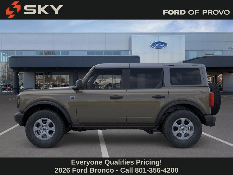 This 2026 Marsh Gray Ford Bronco Big Bend 4WD is well equipped and includes these features and benefits: Ford Connectivity Package (1-Year Included), 4-Wheel Disc Brakes, 4.46 Axle Ratio, 7 Speakers, ABS brakes, Air Conditioning, Alloy wheels, AM/FM radio: SiriusXM with 360L, AM/FM Stereo, Auto High-beam Headlights, Brake assist, Cloth Bucket Seats, Compass, Delay-off headlights, Driver door bin, Driver vanity mirror, Dual front impact airbags, Dual front side impact airbags, Electronic Stability Control, Emergency communication system: 911 Assist, Exterior Parking Camera Rear, Front anti-roll bar, Front Bucket Seats, Front Center Armrest, Front reading lights, Front wheel independent suspension, Fully automatic headlights, Heated door mirrors, Illuminated entry, Integrated roll-over protection, Low tire pressure warning, Occupant sensing airbag, Outside temperature display, Overhead airbag, Overhead console, Panic alarm, Passenger door bin, Passenger vanity mirror, Power door mirrors, Power steering, Power windows, Radio data system, Remote keyless entry, Security system, SiriusXM with 360L, Speed control, Split folding rear seat, Steering wheel mounted audio controls, SYNC 4, Tachometer, Telescoping steering wheel, Tilt steering wheel, Traction control, Trip computer, Variably intermittent wipers, and Wheels: 17" Carbonized Gray-Painted Aluminum.