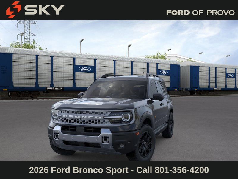 This 2026 Shadow Black Ford Bronco Sport Badlands 4WD is well equipped and includes these features and benefits: Ford Connectivity Package (1-Year Included), Internet access capable: 5G Modem - Ford Connectivity Package, 4-Wheel Disc Brakes, 6 Speakers, ABS brakes, Air Conditioning, Alloy wheels, AM/FM radio: SiriusXM with 360L, AM/FM Stereo, Apple CarPlay/Android Auto, Auto High-beam Headlights, Auto-dimming Rear-View mirror, Automatic temperature control, Brake assist, Compass, Delay-off headlights, Driver door bin, Driver vanity mirror, Dual front impact airbags, Dual front side impact airbags, Electronic Stability Control, Emergency communication system: SYNC 4 911 Assist, Exterior Parking Camera Rear, Four wheel independent suspension, Front anti-roll bar, Front Bucket Seats, Front Center Armrest, Front fog lights, Front reading lights, Fully automatic headlights, Heated door mirrors, Heated front seats, Heated steering wheel, Illuminated entry, Knee airbag, Leather-Trimmed Heated Front Sport Contour Bucket Seats, Low tire pressure warning, Memory seat, Occupant sensing airbag, Outside temperature display, Overhead airbag, Overhead console, Panic alarm, Passenger door bin, Passenger vanity mirror, Power door mirrors, Power driver seat, Power passenger seat, Power steering, Power windows, Radio data system, Rear anti-roll bar, Rear reading lights, Rear seat center armrest, Rear window defroster, Rear window wiper, Remote keyless entry, Security system, SiriusXM with 360L, Speed control, Speed-sensing steering, Speed-Sensitive Wipers, Split folding rear seat, Steering wheel mounted audio controls, SYNC 4 with Enhanced Voice Recognition, Tachometer, Telescoping steering wheel, Tilt steering wheel, Traction control, Trip computer, Variably intermittent wipers, and Wheels: 17" Matte Black-Painted Aluminum.