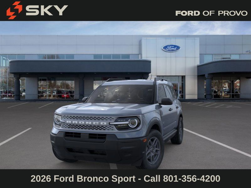 This 2026 Azure Gray Metallic Tri-Coat Ford Bronco Sport Big Bend 4WD is well equipped and includes these features and benefits: Ford Connectivity Package (1-Year Included), Internet access capable: 5G Modem - Ford Connectivity Package, 4-Wheel Disc Brakes, 6 Speakers, ABS brakes, Air Conditioning, Alloy wheels, AM/FM radio: SiriusXM with 360L, AM/FM Stereo, Apple CarPlay/Android Auto, Auto High-beam Headlights, Automatic temperature control, Brake assist, Cloth with Easy-to-Clean Front Bucket Seats, Compass, Delay-off headlights, Driver door bin, Driver vanity mirror, Dual front impact airbags, Dual front side impact airbags, Electronic Stability Control, Emergency communication system: SYNC 4 911 Assist, Exterior Parking Camera Rear, Four wheel independent suspension, Front anti-roll bar, Front Bucket Seats, Front Center Armrest, Front reading lights, Fully automatic headlights, Heated door mirrors, Illuminated entry, Knee airbag, Low tire pressure warning, Occupant sensing airbag, Outside temperature display, Overhead airbag, Overhead console, Panic alarm, Passenger door bin, Passenger vanity mirror, Power door mirrors, Power steering, Power windows, Radio data system, Rear anti-roll bar, Rear Parking Sensors, Rear reading lights, Rear seat center armrest, Rear window defroster, Rear window wiper, Remote keyless entry, Security system, SiriusXM with 360L, Speed control, Speed-sensing steering, Speed-Sensitive Wipers, Split folding rear seat, Steering wheel mounted audio controls, SYNC 4 with Enhanced Voice Recognition, Tachometer, Telescoping steering wheel, Tilt steering wheel, Traction control, Trip computer, Variably intermittent wipers, and Wheels: 17" Carbonized Gray Painted Aluminum.