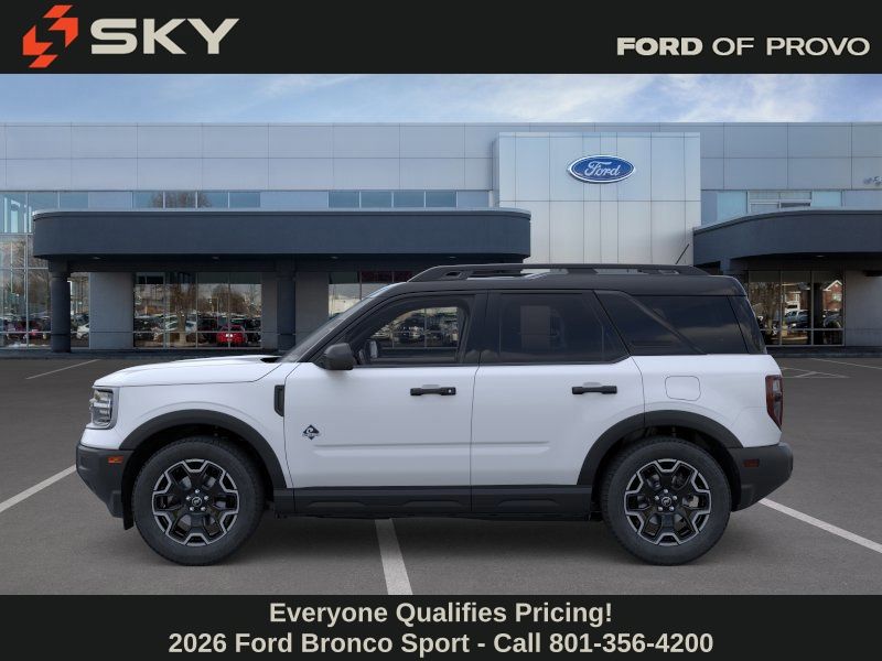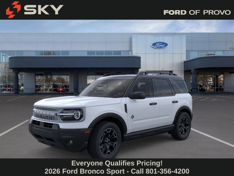 This 2026 Space White Metallic Ford Bronco Sport Outer Banks 4WD is well equipped and includes these features and benefits: Ford Connectivity Package (1-Year Included), Internet access capable: 5G Modem - Ford Connectivity Package, 4-Wheel Disc Brakes, 6 Speakers, ABS brakes, Air Conditioning, Alloy wheels, AM/FM radio: SiriusXM with 360L, AM/FM Stereo, Apple CarPlay/Android Auto, Auto High-beam Headlights, Auto-dimming Rear-View mirror, Automatic temperature control, Brake assist, Compass, Delay-off headlights, Driver door bin, Driver vanity mirror, Dual front impact airbags, Dual front side impact airbags, Electronic Stability Control, Emergency communication system: SYNC 4 911 Assist, Exterior Parking Camera Rear, Four wheel independent suspension, Front anti-roll bar, Front Bucket Seats, Front Center Armrest, Front Driver/Passenger Seat Back Map Pockets, Front dual zone A/C, Front fog lights, Front reading lights, Fully automatic headlights, Heated door mirrors, Heated front seats, Heated steering wheel, Illuminated entry, Knee airbag, Low tire pressure warning, Memory seat, Occupant sensing airbag, Outside temperature display, Overhead airbag, Overhead console, Panic alarm, Passenger door bin, Passenger vanity mirror, Power door mirrors, Power driver seat, Power passenger seat, Power steering, Power windows, Radio data system, Rear anti-roll bar, Rear Parking Sensors, Rear reading lights, Rear seat center armrest, Rear window defroster, Rear window wiper, Remote keyless entry, Security system, SiriusXM with 360L, Speed control, Speed-sensing steering, Speed-Sensitive Wipers, Split folding rear seat, Steering wheel mounted audio controls, SYNC 4 with Enhanced Voice Recognition, Tachometer, Telescoping steering wheel, Tilt steering wheel, Traction control, Trip computer, Variably intermittent wipers, and Wheels: 18" Ebony Black.