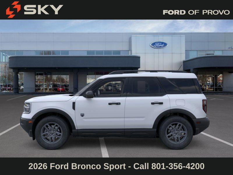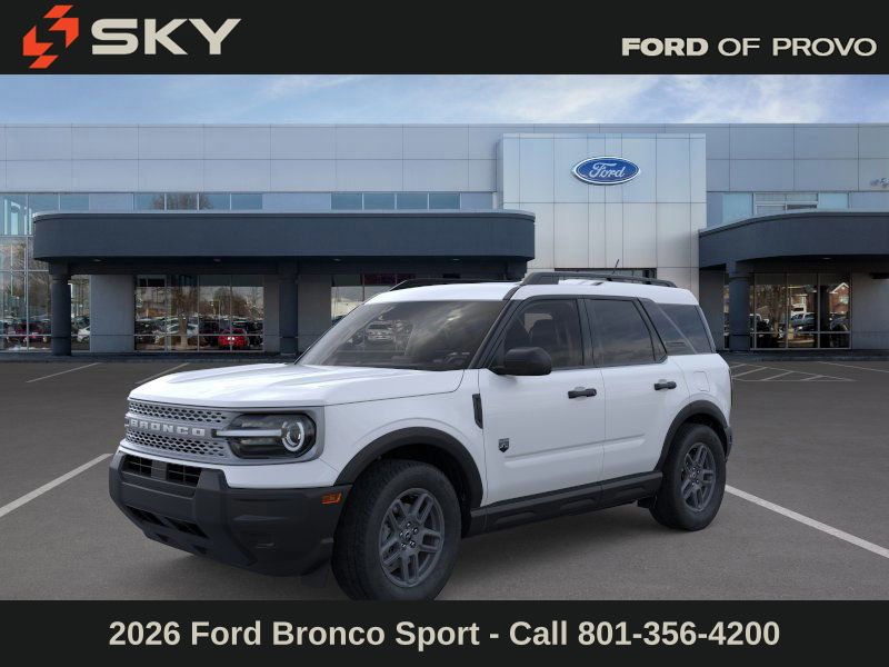 This 2026 Space White Metallic Ford Bronco Sport Big Bend 4WD is well equipped and includes these features and benefits: Ford Connectivity Package (1-Year Included), Internet access capable: 5G Modem - Ford Connectivity Package, 4-Wheel Disc Brakes, 6 Speakers, ABS brakes, Air Conditioning, Alloy wheels, AM/FM radio: SiriusXM with 360L, AM/FM Stereo, Apple CarPlay/Android Auto, Auto High-beam Headlights, Automatic temperature control, Brake assist, Cloth with Easy-to-Clean Front Bucket Seats, Compass, Delay-off headlights, Driver door bin, Driver vanity mirror, Dual front impact airbags, Dual front side impact airbags, Electronic Stability Control, Emergency communication system: SYNC 4 911 Assist, Exterior Parking Camera Rear, Four wheel independent suspension, Front anti-roll bar, Front Bucket Seats, Front Center Armrest, Front reading lights, Fully automatic headlights, Heated door mirrors, Illuminated entry, Knee airbag, Low tire pressure warning, Occupant sensing airbag, Outside temperature display, Overhead airbag, Overhead console, Panic alarm, Passenger door bin, Passenger vanity mirror, Power door mirrors, Power steering, Power windows, Radio data system, Rear anti-roll bar, Rear Parking Sensors, Rear reading lights, Rear seat center armrest, Rear window defroster, Rear window wiper, Remote keyless entry, Security system, SiriusXM with 360L, Speed control, Speed-sensing steering, Speed-Sensitive Wipers, Split folding rear seat, Steering wheel mounted audio controls, SYNC 4 with Enhanced Voice Recognition, Tachometer, Telescoping steering wheel, Tilt steering wheel, Traction control, Trip computer, Variably intermittent wipers, and Wheels: 17" Carbonized Gray Painted Aluminum.