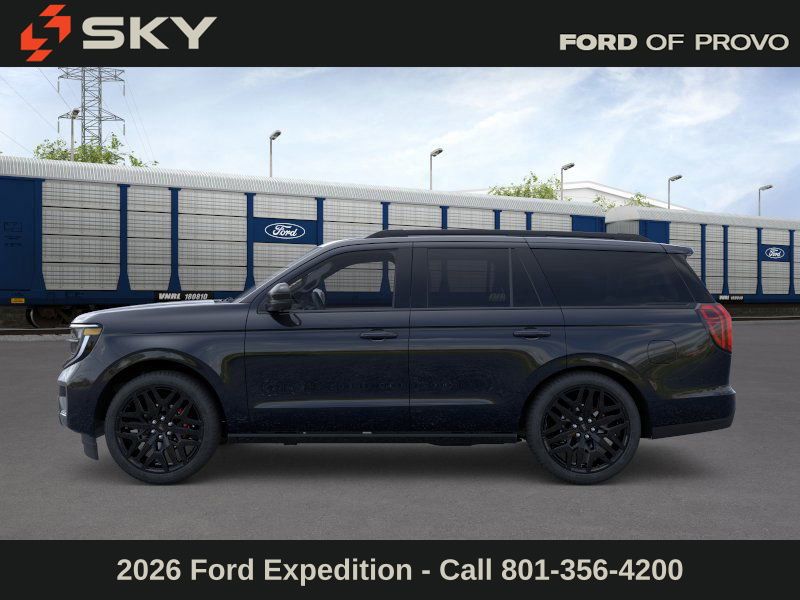 This 2026 Agate Black Metallic Ford Expedition Platinum 4WD is well equipped and includes these features and benefits: Ford Connectivity Package (1-Year Included), 4WD, 10 Speakers, 2nd Row Power-Folding Captain's Chairs, 3.73 Axle Ratio, 3rd row seats: split-bench, 4-Wheel Disc Brakes, ABS brakes, Air Conditioning, Alloy wheels, AM/FM radio: SiriusXM with 360L, Apple CarPlay/Android Auto, Auto High-beam Headlights, Auto-dimming door mirrors, Auto-dimming Rear-View mirror, Automatic temperature control, Brake assist, Bumpers: body-color, Compass, Delay-off headlights, Driver door bin, Driver vanity mirror, Dual front impact airbags, Dual front side impact airbags, Electronic Stability Control, Emergency communication system: 911 Assist, Exterior Parking Camera Rear, Ford Digital Experience, Four wheel independent suspension, Front anti-roll bar, Front Bucket Seats, Front Center Armrest, Front dual zone A/C, Front reading lights, Fully automatic headlights, Garage door transmitter, Genuine wood dashboard insert, Genuine wood door panel insert, Heated and Ventilated Leather Front Captain's Chairs, Heated door mirrors, Heated front seats, Heated rear seats, Heated steering wheel, Illuminated entry, Leather steering wheel, Low tire pressure warning, Memory seat, Navigation System, Occupant sensing airbag, Outside temperature display, Overhead airbag, Overhead console, Panic alarm, Passenger door bin, Passenger vanity mirror, Power door mirrors, Power driver seat, Power moonroof: Vista Roof, Power passenger seat, Power steering, Power windows, Radio data system, Radio: B&O Sound System by Bang and Olufsen, Rain sensing wipers, Rear air conditioning, Rear anti-roll bar, Rear reading lights, Rear window defroster, Rear window wiper, Reclining 3rd row seat, Remote keyless entry, Security system, SiriusXM with 360L, Speed control, Speed-sensing steering, Speed-Sensitive Wipers, Split folding rear seat, Spoiler, Steering wheel memory, Steering wheel mounted audio controls, Tachometer, Telescoping steering wheel, Tilt steering wheel, Traction control, Trip computer, Turn signal indicator mirrors, Variably intermittent wipers, Ventilated front seats, Voltmeter, and Wheels: 20" x 8.5" Ebony Bright Machined Aluminum.