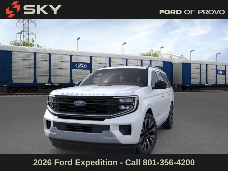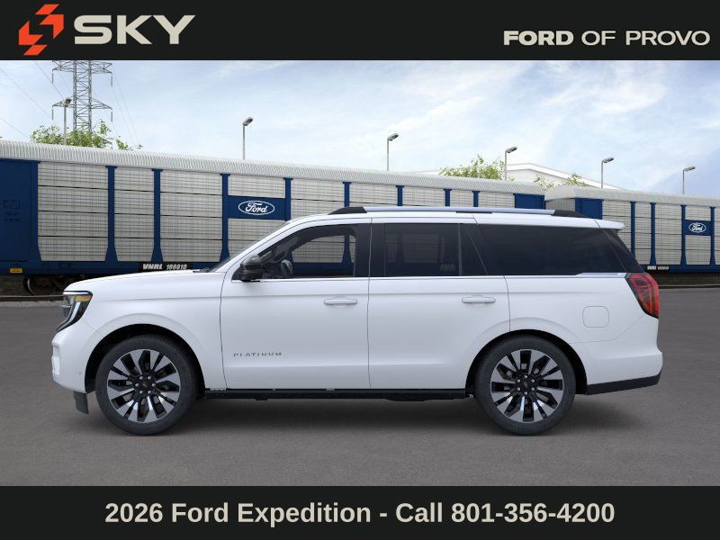 This 2026 Star White Metallic Tri-Coat Ford Expedition Platinum 4WD is well equipped and includes these features and benefits: Ford Connectivity Package (1-Year Included), 4WD, 10 Speakers, 2nd Row Power-Folding Captain's Chairs, 3.73 Axle Ratio, 3rd row seats: split-bench, 4-Wheel Disc Brakes, ABS brakes, Air Conditioning, Alloy wheels, AM/FM radio: SiriusXM with 360L, Apple CarPlay/Android Auto, Auto High-beam Headlights, Auto-dimming door mirrors, Auto-dimming Rear-View mirror, Automatic temperature control, Brake assist, Bumpers: body-color, Compass, Delay-off headlights, Driver door bin, Driver vanity mirror, Dual front impact airbags, Dual front side impact airbags, Electronic Stability Control, Emergency communication system: 911 Assist, Exterior Parking Camera Rear, Ford Digital Experience, Four wheel independent suspension, Front anti-roll bar, Front Bucket Seats, Front Center Armrest, Front dual zone A/C, Front reading lights, Fully automatic headlights, Garage door transmitter, Genuine wood dashboard insert, Genuine wood door panel insert, Heated and Ventilated Leather Front Captain's Chairs, Heated door mirrors, Heated front seats, Heated rear seats, Heated steering wheel, Illuminated entry, Leather steering wheel, Low tire pressure warning, Memory seat, Navigation System, Occupant sensing airbag, Outside temperature display, Overhead airbag, Overhead console, Panic alarm, Passenger door bin, Passenger vanity mirror, Power door mirrors, Power driver seat, Power moonroof: Vista Roof, Power passenger seat, Power steering, Power windows, Radio data system, Radio: B&O Sound System by Bang and Olufsen, Rain sensing wipers, Rear air conditioning, Rear anti-roll bar, Rear reading lights, Rear window defroster, Rear window wiper, Reclining 3rd row seat, Remote keyless entry, Security system, SiriusXM with 360L, Speed control, Speed-sensing steering, Speed-Sensitive Wipers, Split folding rear seat, Spoiler, Steering wheel memory, Steering wheel mounted audio controls, Tachometer, Telescoping steering wheel, Tilt steering wheel, Traction control, Trip computer, Turn signal indicator mirrors, Variably intermittent wipers, Ventilated front seats, Voltmeter, and Wheels: 20" x 8.5" Ebony Bright Machined Aluminum.