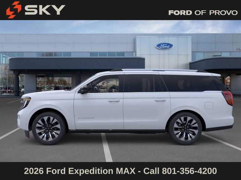 This 2026 Space Silver Metallic Ford Expedition Max Platinum 4WD is well equipped and includes these features and benefits: Ford Connectivity Package (1-Year Included), 10 Speakers, 2nd Row Power-Folding Captain's Chairs, 3.73 Axle Ratio, 3rd row seats: split-bench, 4-Wheel Disc Brakes, ABS brakes, Air Conditioning, Alloy wheels, AM/FM radio: SiriusXM with 360L, Apple CarPlay/Android Auto, Auto High-beam Headlights, Auto-dimming door mirrors, Auto-dimming Rear-View mirror, Automatic temperature control, Brake assist, Bumpers: body-color, Compass, Delay-off headlights, Driver door bin, Driver vanity mirror, Dual front impact airbags, Dual front side impact airbags, Electronic Stability Control, Emergency communication system: 911 Assist, Exterior Parking Camera Rear, Ford Digital Experience, Four wheel independent suspension, Front anti-roll bar, Front Bucket Seats, Front Center Armrest, Front dual zone A/C, Front reading lights, Fully automatic headlights, Garage door transmitter, Genuine wood dashboard insert, Genuine wood door panel insert, Heated and Ventilated Leather Front Captain's Chairs, Heated door mirrors, Heated front seats, Heated rear seats, Heated steering wheel, Illuminated entry, Leather steering wheel, Low tire pressure warning, Memory seat, Navigation System, Occupant sensing airbag, Outside temperature display, Overhead airbag, Overhead console, Panic alarm, Passenger door bin, Passenger vanity mirror, Power door mirrors, Power driver seat, Power moonroof: Vista Roof, Power passenger seat, Power steering, Power windows, Radio data system, Radio: B&O Sound System by Bang and Olufsen, Rain sensing wipers, Rear air conditioning, Rear anti-roll bar, Rear reading lights, Rear window defroster, Rear window wiper, Reclining 3rd row seat, Remote keyless entry, Security system, SiriusXM with 360L, Speed control, Speed-sensing steering, Speed-Sensitive Wipers, Split folding rear seat, Spoiler, Steering wheel memory, Steering wheel mounted audio controls, Tachometer, Telescoping steering wheel, Tilt steering wheel, Traction control, Trip computer, Turn signal indicator mirrors, Variably intermittent wipers, Ventilated front seats, Voltmeter, and Wheels: 20" x 8.5" Ebony Bright Machined Aluminum.