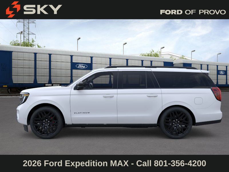 This 2026 Star White Metallic Tri-Coat Ford Expedition Max Platinum 4WD is well equipped and includes these features and benefits: Ford Connectivity Package (1-Year Included), 10 Speakers, 2nd Row Power-Folding Captain's Chairs, 3.73 Axle Ratio, 3rd row seats: split-bench, 4-Wheel Disc Brakes, ABS brakes, Air Conditioning, Alloy wheels, AM/FM radio: SiriusXM with 360L, Apple CarPlay/Android Auto, Auto High-beam Headlights, Auto-dimming door mirrors, Auto-dimming Rear-View mirror, Automatic temperature control, Brake assist, Bumpers: body-color, Compass, Delay-off headlights, Driver door bin, Driver vanity mirror, Dual front impact airbags, Dual front side impact airbags, Electronic Stability Control, Emergency communication system: 911 Assist, Exterior Parking Camera Rear, Ford Digital Experience, Four wheel independent suspension, Front anti-roll bar, Front Bucket Seats, Front Center Armrest, Front dual zone A/C, Front reading lights, Fully automatic headlights, Garage door transmitter, Genuine wood dashboard insert, Genuine wood door panel insert, Heated and Ventilated Leather Front Captain's Chairs, Heated door mirrors, Heated front seats, Heated rear seats, Heated steering wheel, Illuminated entry, Leather steering wheel, Low tire pressure warning, Memory seat, Navigation System, Occupant sensing airbag, Outside temperature display, Overhead airbag, Overhead console, Panic alarm, Passenger door bin, Passenger vanity mirror, Power door mirrors, Power driver seat, Power moonroof: Vista Roof, Power passenger seat, Power steering, Power windows, Radio data system, Radio: B&O Sound System by Bang and Olufsen, Rain sensing wipers, Rear air conditioning, Rear anti-roll bar, Rear reading lights, Rear window defroster, Rear window wiper, Reclining 3rd row seat, Remote keyless entry, Security system, SiriusXM with 360L, Speed control, Speed-sensing steering, Speed-Sensitive Wipers, Split folding rear seat, Spoiler, Steering wheel memory, Steering wheel mounted audio controls, Tachometer, Telescoping steering wheel, Tilt steering wheel, Traction control, Trip computer, Turn signal indicator mirrors, Variably intermittent wipers, Ventilated front seats, Voltmeter, and Wheels: 20" x 8.5" Ebony Bright Machined Aluminum.