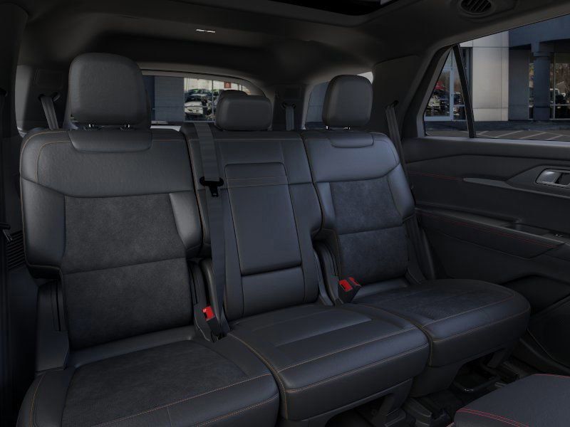 This 2026 Agate Black Metallic Ford Explorer ST 4WD is well equipped and includes these features and benefits: Equipment Group 400A Standard Package (Heated/Ventilated Miko Suede Captain's Chairs, Radio: B&O Sound System by Bang and Olufsen, and Wheels: 21" Magnetite-Painted Aluminum), Sun and Sound Package (Multicontour Seats with Front Active Motion, Panoramic Fixed Glass Roof with Power Shade, Radio: B&O Sound System by Bang & Olufsen, and Remote Control Front Windows), 4WD, 10 Speakers, 2nd Row 35/30/35 Bench with E-Z Entry and Armrest, 3rd row seats: bench, 4-Wheel Disc Brakes, ABS brakes, Air Conditioning, Alloy wheels, AM/FM radio: SiriusXM with 360L, Apple CarPlay/Android Auto, Auto High-beam Headlights, Auto-dimming door mirrors, Auto-dimming Rear-View mirror, Automatic temperature control, BlueCruise Equipped (1-Year + 90-Day Plan), Brake assist, Bumpers: body-color, Compass, Delay-off headlights, Driver door bin, Driver vanity mirror, Dual front impact airbags, Dual front side impact airbags, Electronic Stability Control, Emergency communication system: 911 Assist, Exterior Parking Camera Rear, Four wheel independent suspension, Front anti-roll bar, Front Bucket Seats, Front Center Armrest, Front dual zone A/C, Front fog lights, Front License Plate Bracket, Front reading lights, Fully automatic headlights, Garage door transmitter, Heated door mirrors, Heated front seats, Heated rear seats, Heated steering wheel, Illuminated entry, Knee airbag, Leather steering wheel, Low tire pressure warning, Memory seat, Navigation System, Occupant sensing airbag, Outside temperature display, Overhead airbag, Overhead console, Panic alarm, Passenger door bin, Passenger vanity mirror, Power door mirrors, Power driver seat, Power Liftgate, Power passenger seat, Power steering, Power windows, Rain sensing wipers, Rear air conditioning, Rear anti-roll bar, Rear reading lights, Rear window defroster, Rear window wiper, Remote keyless entry, SecuriCode Keyless Entry Keypad, Security system, Speed control, Speed-sensing steering, Speed-Sensitive Wipers, Split folding rear seat, Spoiler, Sport steering wheel, Steering wheel mounted audio controls, Tachometer, Telescoping steering wheel, Tilt steering wheel, Traction control, Trip computer, Turn signal indicator mirrors, Variably intermittent wipers, and Ventilated front seats.