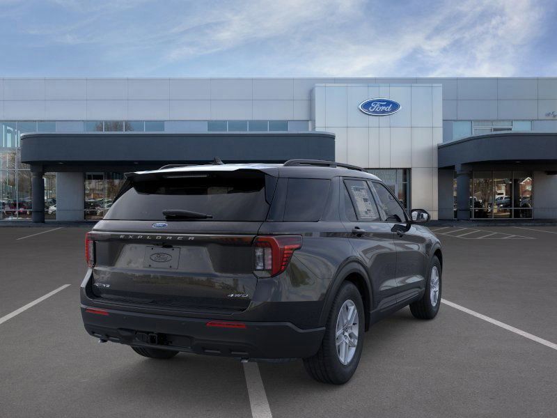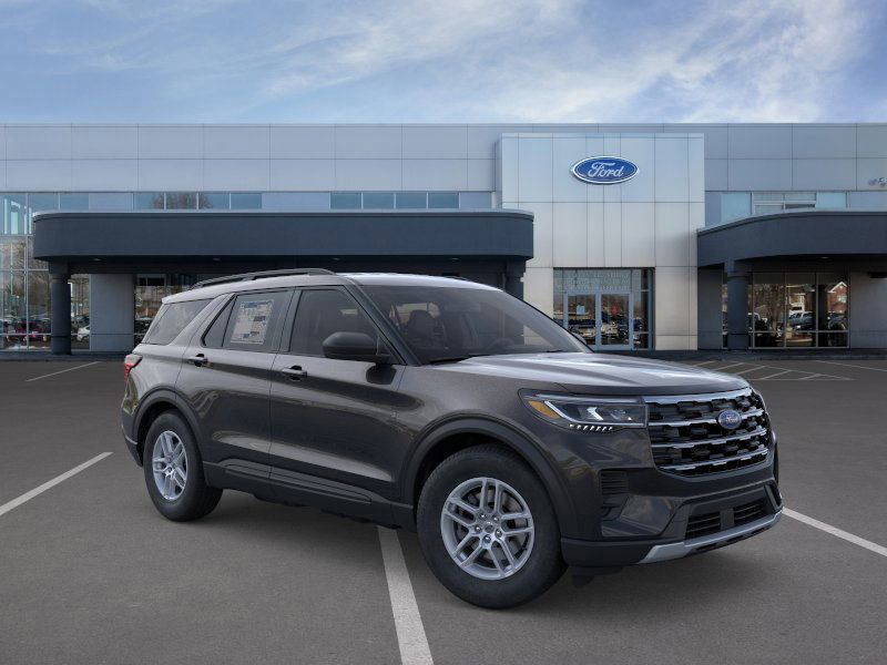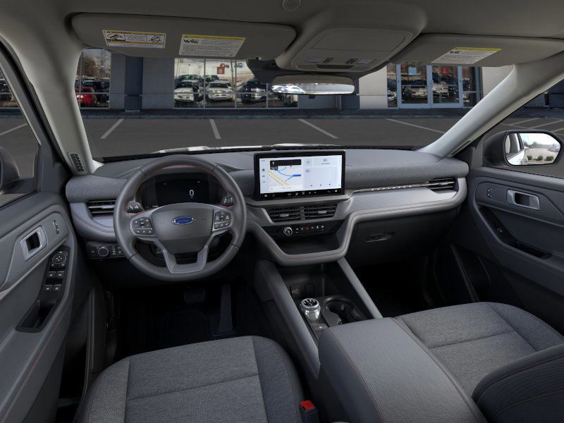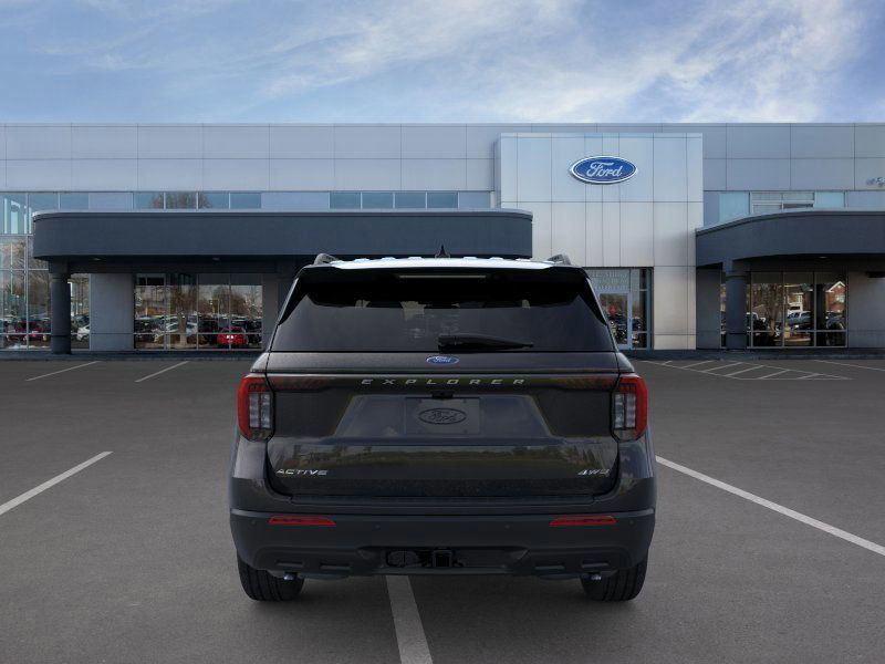 This 2026 Agate Black Metallic Ford Explorer Active 4WD is well equipped and includes these features and benefits: 4WD, 3rd row seats: bench, 4-Wheel Disc Brakes, 6 Speakers, ABS brakes, Air Conditioning, Alloy wheels, AM/FM radio: SiriusXM with 360L, AM/FM Stereo, Apple CarPlay/Android Auto, Auto High-beam Headlights, Automatic temperature control, Brake assist, Bumpers: body-color, Compass, Delay-off headlights, Driver door bin, Driver vanity mirror, Dual front impact airbags, Dual front side impact airbags, Electronic Stability Control, Emergency communication system: 911 Assist, Exterior Parking Camera Rear, Four wheel independent suspension, Front anti-roll bar, Front Bucket Seats, Front Center Armrest, Front dual zone A/C, Front License Plate Bracket, Front reading lights, Fully automatic headlights, Heated door mirrors, Illuminated entry, Knee airbag, Low tire pressure warning, Navigation System, Occupant sensing airbag, Outside temperature display, Overhead airbag, Overhead console, Panic alarm, Passenger door bin, Passenger vanity mirror, Power door mirrors, Power driver seat, Power steering, Power windows, Rear air conditioning, Rear anti-roll bar, Rear reading lights, Rear window defroster, Rear window wiper, Remote keyless entry, Security system, Speed control, Speed-sensing steering, Speed-Sensitive Wipers, Split folding rear seat, Spoiler, Steering wheel mounted audio controls, Tachometer, Telescoping steering wheel, Tilt steering wheel, Traction control, Trip computer, Variably intermittent wipers, and Wheels: 18" Sparkle Silver-Painted Aluminum.
