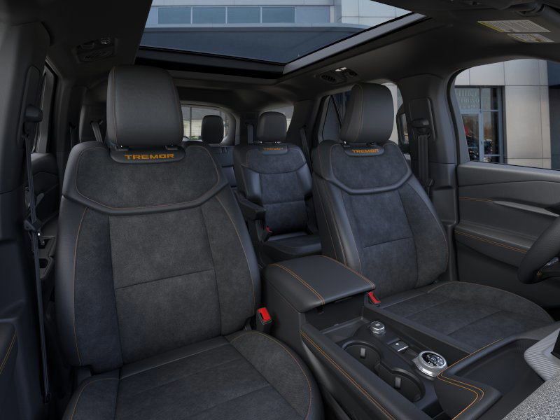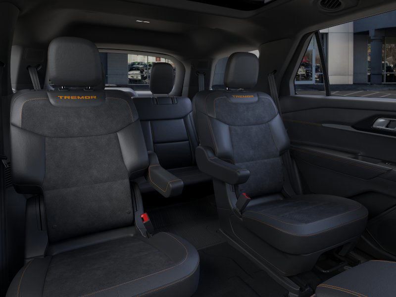This 2026 Marsh Gray Ford Explorer Tremor 4WD is well equipped and includes these features and benefits: 4WD, 10 Speakers, 3rd row seats: bench, 4-Wheel Disc Brakes, ABS brakes, Air Conditioning, Alloy wheels, AM/FM radio: SiriusXM with 360L, Apple CarPlay/Android Auto, Auto High-beam Headlights, Automatic temperature control, Brake assist, Bumpers: body-color, Compass, Delay-off headlights, Driver door bin, Driver vanity mirror, Dual front impact airbags, Dual front side impact airbags, Electronic Stability Control, Emergency communication system: 911 Assist, Exterior Parking Camera Rear, Four wheel independent suspension, Front anti-roll bar, Front Bucket Seats, Front Center Armrest, Front dual zone A/C, Front fog lights, Front reading lights, Fully automatic headlights, Heated door mirrors, Heated front seats, Heated rear seats, Heated steering wheel, Illuminated entry, Knee airbag, Leather steering wheel, Low tire pressure warning, Navigation System, Occupant sensing airbag, Outside temperature display, Overhead airbag, Overhead console, Panic alarm, Passenger door bin, Passenger vanity mirror, Power door mirrors, Power driver seat, Power Liftgate, Power passenger seat, Power steering, Power windows, Radio: B&O Sound System by Bang and Olufsen, Rear air conditioning, Rear anti-roll bar, Rear reading lights, Rear window defroster, Rear window wiper, Remote keyless entry, Security system, Speed control, Speed-sensing steering, Speed-Sensitive Wipers, Split folding rear seat, Spoiler, Sport steering wheel, Steering wheel mounted audio controls, Tachometer, Telescoping steering wheel, Tilt steering wheel, Traction control, Trip computer, Variably intermittent wipers, Ventilated front seats, and Wheels: 18" High Gloss Black-Painted Aluminum.