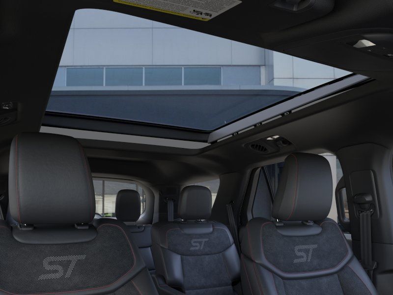 This 2026 Star White Metallic Tri-Coat Ford Explorer ST 4WD is well equipped and includes these features and benefits: 4WD, 10 Speakers, 3rd row seats: bench, 4-Wheel Disc Brakes, ABS brakes, Air Conditioning, Alloy wheels, AM/FM radio: SiriusXM with 360L, Apple CarPlay/Android Auto, Auto High-beam Headlights, Auto-dimming door mirrors, Auto-dimming Rear-View mirror, Automatic temperature control, Brake assist, Bumpers: body-color, Compass, Delay-off headlights, Driver door bin, Driver vanity mirror, Dual front impact airbags, Dual front side impact airbags, Electronic Stability Control, Emergency communication system: 911 Assist, Exterior Parking Camera Rear, Four wheel independent suspension, Front anti-roll bar, Front Bucket Seats, Front Center Armrest, Front dual zone A/C, Front fog lights, Front reading lights, Fully automatic headlights, Garage door transmitter, Heated door mirrors, Heated front seats, Heated rear seats, Heated steering wheel, Heated/Ventilated Miko Suede Captain's Chairs, Illuminated entry, Knee airbag, Leather steering wheel, Low tire pressure warning, Memory seat, Navigation System, Occupant sensing airbag, Outside temperature display, Overhead airbag, Overhead console, Panic alarm, Passenger door bin, Passenger vanity mirror, Power door mirrors, Power driver seat, Power Liftgate, Power passenger seat, Power steering, Power windows, Radio: B&O Sound System by Bang and Olufsen, Rain sensing wipers, Rear air conditioning, Rear anti-roll bar, Rear reading lights, Rear window defroster, Rear window wiper, Remote keyless entry, Security system, Speed control, Speed-sensing steering, Speed-Sensitive Wipers, Split folding rear seat, Spoiler, Sport steering wheel, Steering wheel mounted audio controls, Tachometer, Telescoping steering wheel, Tilt steering wheel, Traction control, Trip computer, Turn signal indicator mirrors, Variably intermittent wipers, Ventilated front seats, and Wheels: 21" Magnetite-Painted Aluminum.