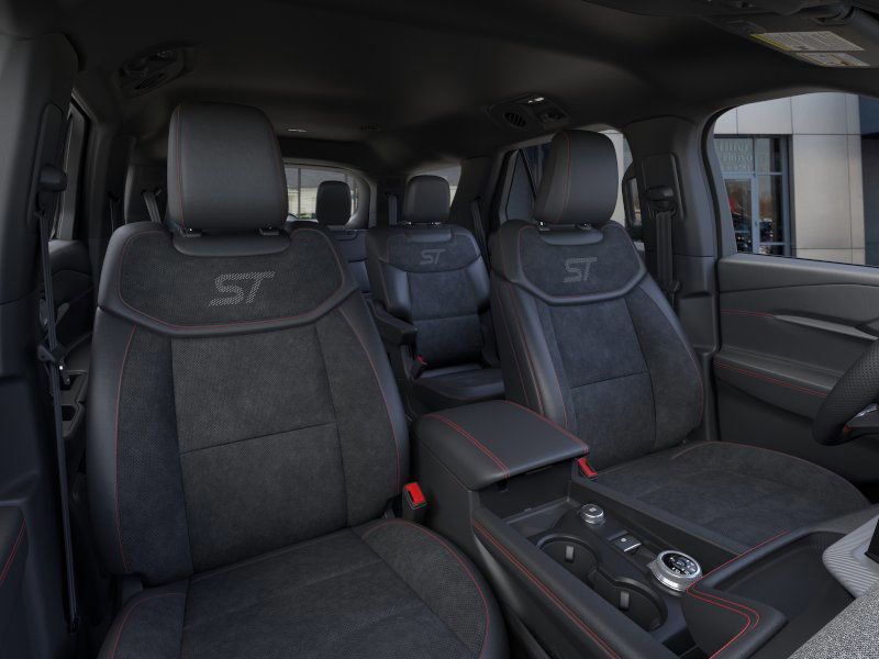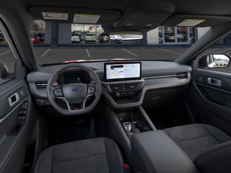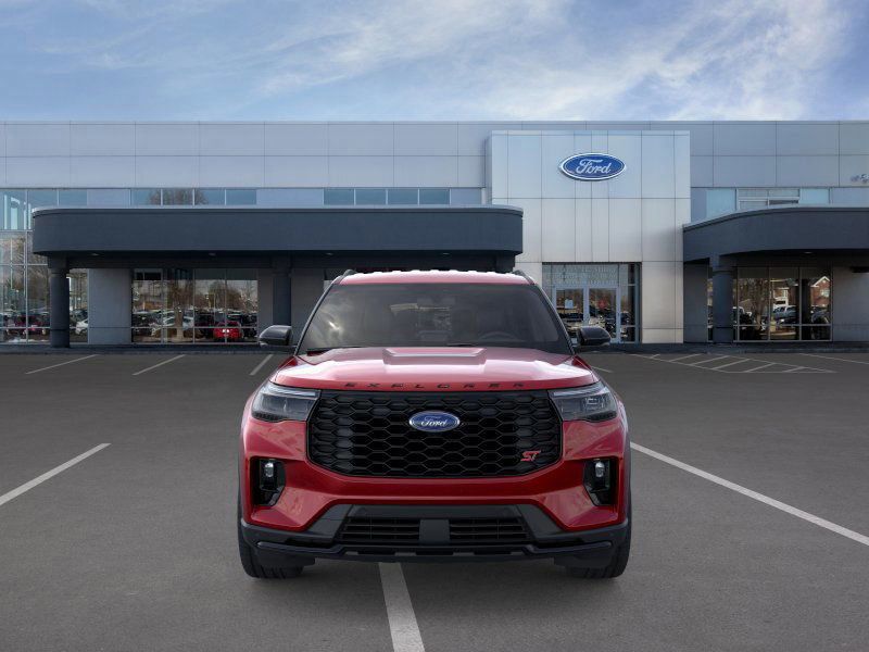 This 2026 Rapid Red Metallic Tinted Clearcoat Ford Explorer ST 4WD is well equipped and includes these features and benefits: Equipment Group 400A Standard Package (Heated/Ventilated Miko Suede Captain's Chairs, Radio: B&O Sound System by Bang and Olufsen, and Wheels: 21" Magnetite-Painted Aluminum), 4WD, 10 Speakers, 3rd row seats: bench, 4-Wheel Disc Brakes, ABS brakes, Air Conditioning, Alloy wheels, AM/FM radio: SiriusXM with 360L, Apple CarPlay/Android Auto, Auto High-beam Headlights, Auto-dimming door mirrors, Auto-dimming Rear-View mirror, Automatic temperature control, BlueCruise Equipped (1-Year + 90-Day Plan), Brake assist, Bumpers: body-color, Compass, Delay-off headlights, Driver door bin, Driver vanity mirror, Dual front impact airbags, Dual front side impact airbags, Electronic Stability Control, Emergency communication system: 911 Assist, Exterior Parking Camera Rear, Four wheel independent suspension, Front and 2nd Rows Floor Liners with Carper Floor Mats, Front anti-roll bar, Front Bucket Seats, Front Center Armrest, Front dual zone A/C, Front fog lights, Front License Plate Bracket, Front reading lights, Fully automatic headlights, Garage door transmitter, Heated door mirrors, Heated front seats, Heated rear seats, Heated steering wheel, Illuminated entry, Knee airbag, Leather steering wheel, Low tire pressure warning, Memory seat, Navigation System, Occupant sensing airbag, Outside temperature display, Overhead airbag, Overhead console, Panic alarm, Passenger door bin, Passenger vanity mirror, Power door mirrors, Power driver seat, Power Liftgate, Power passenger seat, Power steering, Power windows, Rain sensing wipers, Rear air conditioning, Rear anti-roll bar, Rear reading lights, Rear window defroster, Rear window wiper, Remote keyless entry, SecuriCode Keyless Entry Keypad, Security system, Speed control, Speed-sensing steering, Speed-Sensitive Wipers, Split folding rear seat, Spoiler, Sport steering wheel, Steering wheel mounted audio controls, Tachometer, Telescoping steering wheel, Tilt steering wheel, Traction control, Trip computer, Turn signal indicator mirrors, Variably intermittent wipers, and Ventilated front seats.