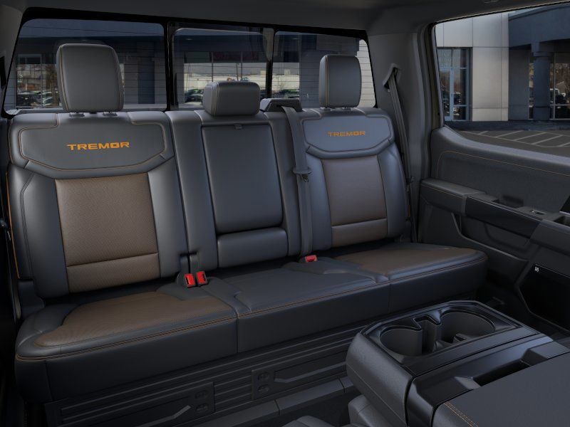 This 2026 Gray Ford F-150 Tremor 4WD is well equipped and includes these features and benefits: Bed Utility Package (4 Pickup Box Tie-Down Plates, LED Box Lighting, and Power Tailgate), Equipment Group 402A High (2nd Row Heated Seats, Auto-Dimming Rear-View Mirror, Electronic Locking with 3.73 Axle Ratio, Front Axle with Torsen Differential, Heated Steering Wheel, LED Taillamps, Media Bin Door, Modular Front Bumper and Carbon Black Rear Bumper, Power Glass Heated Sideview Mirrors, Power-Adjustable Pedals with Memory, Radio: B&O Unleashed Sound System by Bang & Olufsen, Rain-Sensing Wipers, Unique Tremor Leather-Trimmed Seats, Universal Garage Door Opener, and Wheels: 18" Alloy with Dark Matte Finish), Ford Connectivity Package (1-Year Included), GVWR: 7,050 lbs Payload Package, Internet access capable: 5G Modem - Ford Connectivity Package, Mobile Office Package (Console Worksurface, Partitioned Lockable Rear Storage, and Wireless Charging), Tow/Haul Package (Integrated Trailer Brake Controller), 4WD, 4-Wheel Disc Brakes, 8 Speakers, ABS brakes, Adjustable pedals, Air Conditioning, Alloy wheels, AM/FM radio: SiriusXM with 360L, Auto High-beam Headlights, Auto-dimming Rear-View mirror, Automatic temperature control, Brake assist, Bumpers: body-color, Compass, Delay-off headlights, Driver door bin, Driver vanity mirror, Driver's Side SecuriCode Keyless-Entry Keypad, Dual front impact airbags, Dual front side impact airbags, Electronic Stability Control, Emergency communication system: SYNC 4 911 Assist, Front anti-roll bar, Front Bucket Seats, Front Center Armrest, Front dual zone A/C, Front fog lights, Front reading lights, Front wheel independent suspension, Fully automatic headlights, Heated door mirrors, Heated front seats, Illuminated entry, Low tire pressure warning, Navigation system: Connected Navigation, Occupant sensing airbag, Outside temperature display, Overhead airbag, Overhead console, Panic alarm, Passenger door bin, Passenger vanity mirror, Power door mirrors, Power driver seat, Power passenger seat, Power steering, Power windows, Radio data system, Radio: B&O Sound System by Bang and Olufsen, Rear reading lights, Rear step bumper, Rear window defroster, Remote keyless entry, Security system, Speed control, Split folding rear seat, Steering wheel mounted audio controls, SYNC 4 with Enhanced Voice Recognition, Tachometer, Tailgate Step with Work Surface, Telescoping steering wheel, Tilt steering wheel, Traction control, Trip computer, Turn signal indicator mirrors, Twin Panel Moonroof, Unique Sport Cloth 40/Console/40 Power Front Seat, and Variably intermittent wipers.