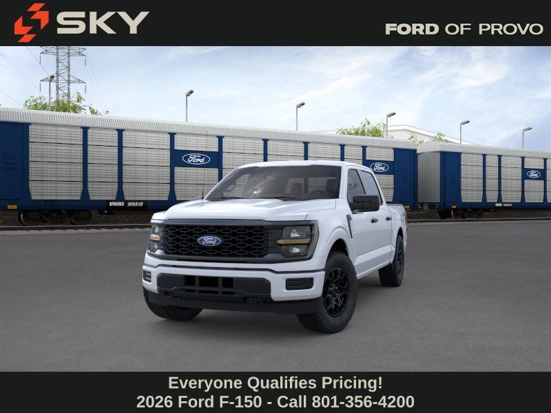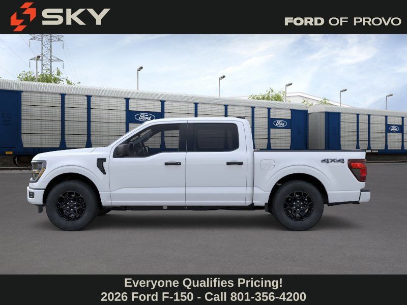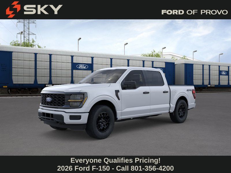 This 2026 Oxford White Ford F-150 STX 4WD is well equipped and includes these features and benefits: Ford Connectivity Package (1-Year Included), GVWR: 6,650 lbs Payload Package, Internet access capable: 5G Modem - Ford Connectivity Package, 4WD, 3.55 Axle Ratio, 4-Wheel Disc Brakes, 6 Speakers, ABS brakes, Air Conditioning, Alloy wheels, AM/FM radio: SiriusXM with 360L, Auto High-beam Headlights, Brake assist, Bumpers: body-color, Compass, Delay-off headlights, Driver door bin, Dual front impact airbags, Dual front side impact airbags, Electronic Stability Control, Emergency communication system: SYNC 4 911 Assist, Front anti-roll bar, Front Bucket Seats, Front Center Armrest, Front reading lights, Front wheel independent suspension, Fully automatic headlights, Heated door mirrors, Illuminated entry, Low tire pressure warning, Occupant sensing airbag, Outside temperature display, Overhead airbag, Overhead console, Panic alarm, Passenger door bin, Passenger vanity mirror, Power door mirrors, Power steering, Power windows, Radio data system, Radio: AM/FM Stereo with SiriusXM 360L, Rear step bumper, Rear window defroster, Remote keyless entry, Security system, Speed control, Split folding rear seat, Steering wheel mounted audio controls, SYNC 4 with Enhanced Voice Recognition, Tachometer, Telescoping steering wheel, Tilt steering wheel, Traction control, Trip computer, Unique Sport Cloth 40/Console/40 Front-Seats, Variably intermittent wipers, and Wheels: 18" Gloss Black.