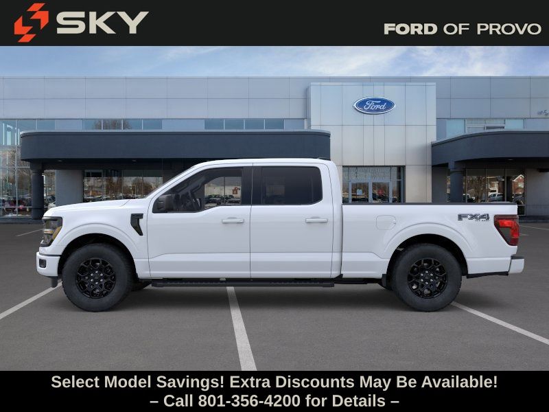This 2026 Oxford White Ford F-150 XLT 4WD is well equipped and includes these features and benefits: Equipment Group 301A Base (18" Painted Aluminum Wheels, Cloth 40/20/40 Front Seat, Dual-Zone Electronic Automatic Temperature Control, Radio: AM/FM Stereo with SiriusXM 360L, SYNC 4 with Enhanced Voice Recognition, and Wrapped Steering Wheel), Ford Connectivity Package (1-Year Included), FX4 Off-Road Package, Internet access capable: 5G Modem - Ford Connectivity Package, Tow/Haul Package, XLT Black Appearance Package, 4WD, 4-Wheel Disc Brakes, 6 Speakers, ABS brakes, Air Conditioning, Alloy wheels, AM/FM radio: SiriusXM with 360L, Auto High-beam Headlights, Brake assist, Bumpers: body-color, Compass, Delay-off headlights, Driver door bin, Driver vanity mirror, Dual front impact airbags, Dual front side impact airbags, Electronic Stability Control, Emergency communication system: SYNC 4 911 Assist, Front anti-roll bar, Front Center Armrest, Front fog lights, Front reading lights, Front wheel independent suspension, Fully automatic headlights, Heated door mirrors, Illuminated entry, Low tire pressure warning, Occupant sensing airbag, Outside temperature display, Overhead airbag, Overhead console, Panic alarm, Passenger door bin, Passenger vanity mirror, Power door mirrors, Power steering, Power windows, Radio data system, Rear reading lights, Rear step bumper, Rear window defroster, Remote keyless entry, Security system, Speed control, Split folding rear seat, Steering wheel mounted audio controls, Tachometer, Telescoping steering wheel, Tilt steering wheel, Tough Bed Spray-in Bedliner, Traction control, Trip computer, and Variably intermittent wipers.