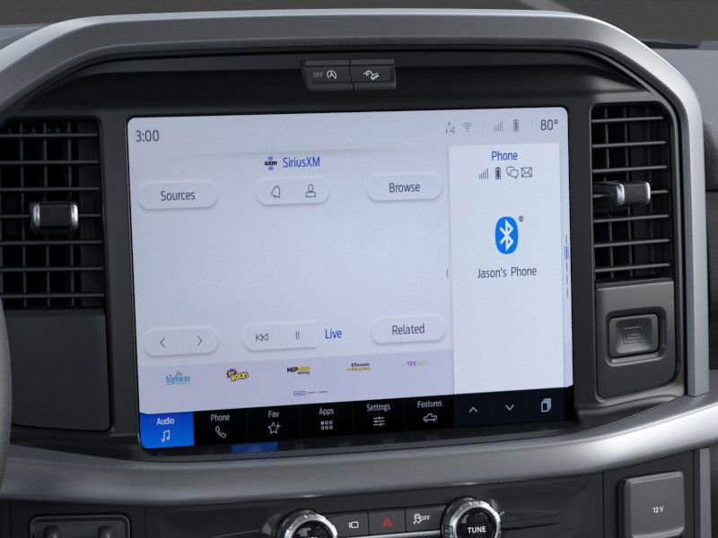 This 2026 Iconic Silver Metallic Ford F-150 XLT 4WD is well equipped and includes these features and benefits: Ford Connectivity Package (1-Year Included), Internet access capable: 5G Modem - Ford Connectivity Package, 4WD, 18" Painted Aluminum Wheels, 3.31 Axle Ratio, 4-Wheel Disc Brakes, 6 Speakers, ABS brakes, Air Conditioning, Alloy wheels, AM/FM radio: SiriusXM with 360L, Auto High-beam Headlights, Brake assist, Bumpers: body-color, Compass, Delay-off headlights, Driver door bin, Driver vanity mirror, Dual front impact airbags, Dual front side impact airbags, Electronic Stability Control, Emergency communication system: SYNC 4 911 Assist, Front anti-roll bar, Front Center Armrest, Front fog lights, Front reading lights, Front wheel independent suspension, Fully automatic headlights, Heated door mirrors, Illuminated entry, Low tire pressure warning, Occupant sensing airbag, Outside temperature display, Overhead airbag, Overhead console, Panic alarm, Passenger door bin, Passenger vanity mirror, Power door mirrors, Power steering, Power windows, Radio data system, Radio: AM/FM Stereo with SiriusXM 360L, Rear Parking Sensors, Rear reading lights, Rear step bumper, Rear window defroster, Remote keyless entry, Security system, Speed control, Split folding rear seat, Steering wheel mounted audio controls, SYNC 4 with Enhanced Voice Recognition, Tachometer, Telescoping steering wheel, Tilt steering wheel, Traction control, Trip computer, and Variably intermittent wipers.