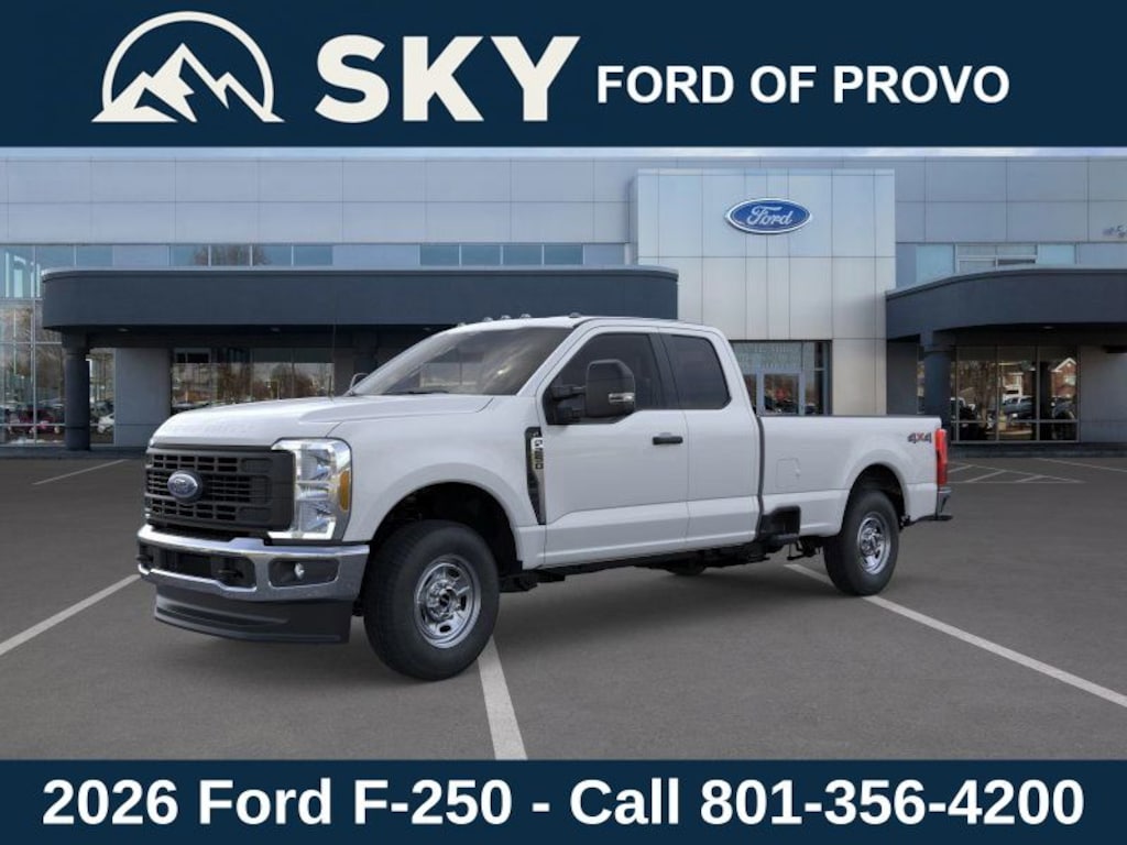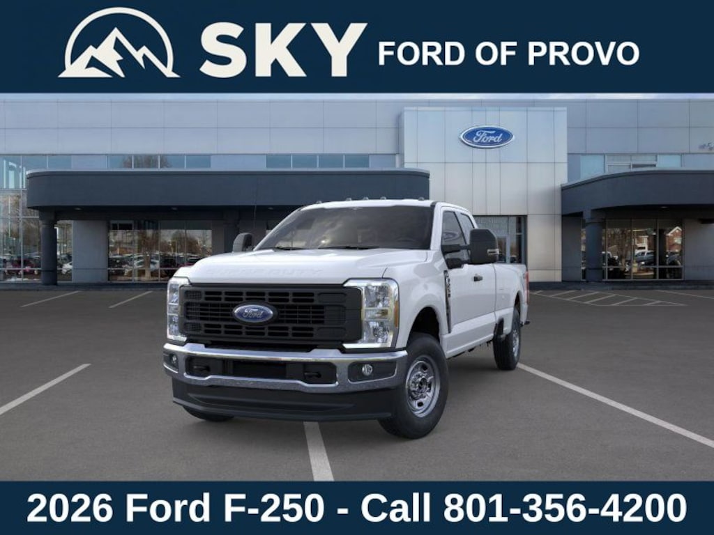 This 2026 Oxford White Ford F-250SD 4WD is well equipped and includes these features and benefits: Ford Connectivity Package (1-Year Included), GVWR: 10,000 lb Payload Package, Internet access capable: 5G Modem - Ford Connectivity Package, 4WD, 3.73 Axle Ratio, 4-Wheel Disc Brakes, 6 Speakers, ABS brakes, Air Conditioning, AM/FM radio, AM/FM Stereo w/MP3 Player, Brake assist, Cloth 40/20/40 Split Bench Seat, Compass, Delay-off headlights, Dual front impact airbags, Dual front side impact airbags, Electronic Stability Control, Emergency communication system: SYNC 4 911 Assist, Exterior Parking Camera Rear, Front anti-roll bar, Front Center Armrest w/Storage, Front reading lights, Fully automatic headlights, Heated door mirrors, Illuminated entry, Low tire pressure warning, Outside temperature display, Overhead airbag, Overhead console, Panic alarm, Passenger cancellable airbag, Passenger vanity mirror, Power door mirrors, Power steering, Power windows, Privacy Glass, Rear step bumper, Remote keyless entry, Security system, Speed control, Split folding rear seat, Steering wheel mounted audio controls, SYNC 4, Tachometer, Telescoping steering wheel, Tilt steering wheel, Traction control, Trip computer, Turn signal indicator mirrors, and Variably intermittent wipers.