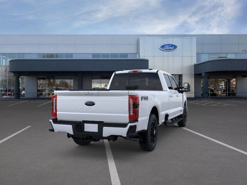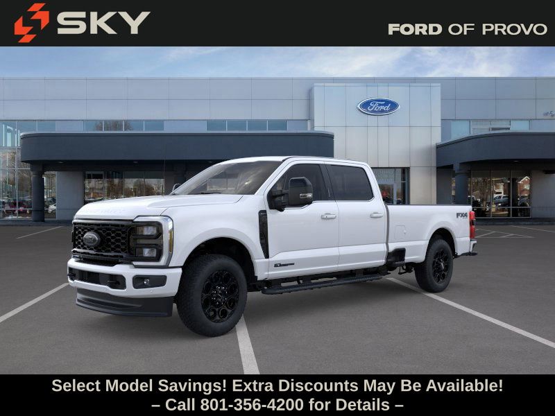 This 2026 Star White Metallic Tri-Coat Ford F-350 SuperDuty Lariat 4WD is well equipped and includes these features and benefits: 5th Wheel/Gooseneck Hitch Prep Package, Black Appearance Package (6" Ebony Black Angular Running Boards, Black Painted Front Grille Surround, Body Color Front and Rear Bumpers, and Ebony Black Painted Mirror Caps), Ford Connectivity Package (1-Year Included), FX4 Off-Road Package (Hill Descent Control, Off-Road Specifically Tuned Shock Absorbers, and Unique FX4 Off-Road Box Decal), Internet access capable: 5G Modem - Ford Connectivity Package, Lariat Premium Package (Power-Sliding Rear-Window with Defrost, Privacy Glass, Pro Trailer Backup Assist, and Pro Trailer Hitch Assist), Lariat Ultimate Package (4-Way Adjustable Headrests, Head-Up Display, Power-Deployable Running Boards, Radio: B&O Unleashed Sound System by Bang & Olufsen, SiriusXM with 360L, SYNC 4 with Enhanced Voice Recognition, and Tailgate Step and Handle), Order Code 618A (Flow-Through Console, Front ActiveX Trimmed 40/Console/40 Seats, Radio: B&O Sound System by Bang and Olufsen, and Wheels: 18" Bright Machined and Carbonized Gray Aluminum), 4WD, 190 Amp Alternator, 4-Wheel Disc Brakes, 410 Amp Dual Alternators, 8 Speakers, ABS brakes, Adaptive Cruise Control with Stop-and-Go, Adjustable pedals, Air Conditioning, Alloy wheels, AM/FM radio: SiriusXM with 360L, Auto High-beam Headlights, Auto-dimming Rear-View mirror, Automatic High Beam, Automatic temperature control, BLIS with Cross-Traffic Alert, Brake assist, Bumpers: chrome, Compass, Delay-off headlights, Driver door bin, Driver vanity mirror, Dual AGM 68 AH Battery, Dual front impact airbags, Dual front side impact airbags, Electronic Stability Control, Emergency communication system: SYNC 4 911 Assist, Engine Block Heater, Front and Rear Parking Sensors, Front anti-roll bar, Front Bucket Seats, Front Center Armrest, Front dual zone A/C, Front fog lights, Front License Plate Bracket, Front reading lights, Fully automatic headlights, Garage door transmitter, Heated door mirrors, Heated front seats, Heated rear seats, Heated steering wheel, Illuminated entry, Lane-Keeping System, Low tire pressure warning, Memory seat, Navigation system: Connected Navigation, Outside temperature display, Overhead airbag, Overhead console, Panic alarm, Passenger door bin, Passenger vanity mirror, Pedal memory, Post-Collision Braking, Power door mirrors, Power driver seat, Power passenger seat, Power steering, Power windows, Pre-Collision Assist, Pro Power Onboard - 2kW, Rain sensing wipers, Rapid-Heat Supplemental Cab Heater, Rear Parking Sensors, Rear reading lights, Rear seat center armrest, Rear step bumper, Rear window defroster, Remote keyless entry, SecuriCode Keyless Entry Keypad (driver's Side), Security system, Speed control, Split folding rear seat, Steering wheel mounted audio controls, Tachometer, Telescoping steering wheel, Tilt steering wheel, Traction control, Trip computer, Turn signal indicator mirrors, Twin Panel Power Moonroof, Upfitter Switches (6), Variably intermittent wipers, and Ventilated front seats.