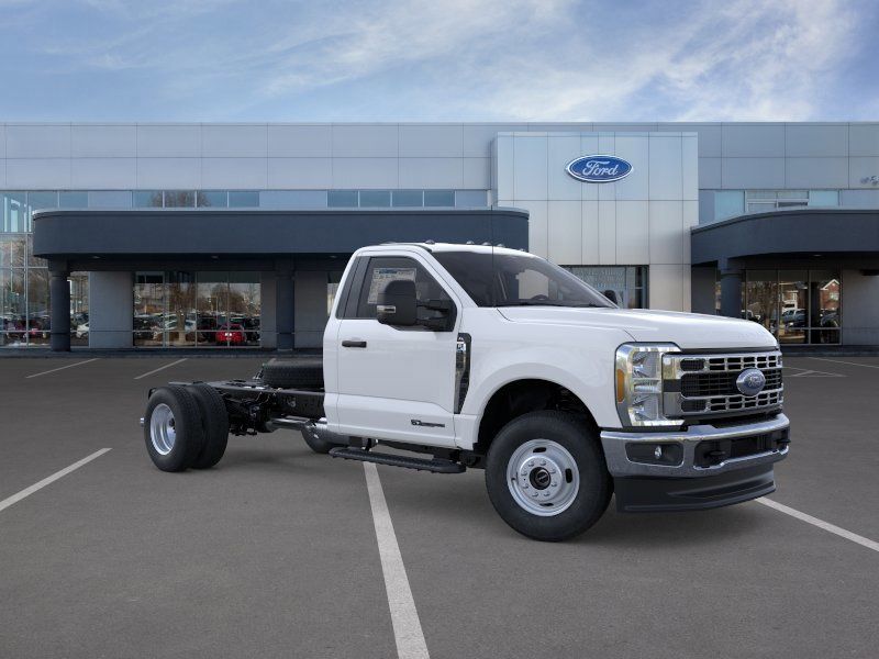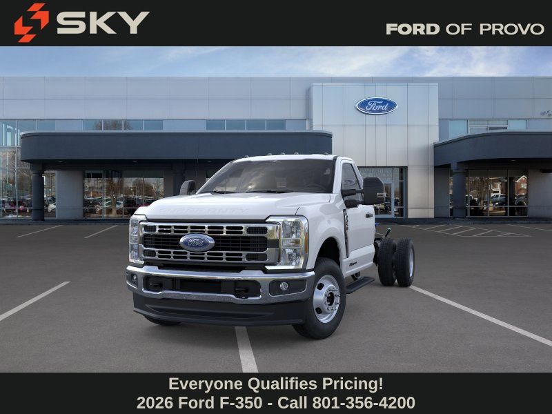 This 2026 Oxford White Ford F-350SD 4WD is well equipped and includes these features and benefits: Ford Connectivity Package (1-Year Included), GVWR: 14,000 Lb Payload Package, Internet access capable: 5G Modem - Ford Connectivity Package, 4WD, 17" Argent Painted Steel Wheels, 3.73 Axle Ratio, 4 Speakers, 4-Wheel Disc Brakes, ABS brakes, Air Conditioning, AM/FM radio, Brake assist, Cloth 40/20/40 Split Bench Seat, Compass, Delay-off headlights, Dual front impact airbags, Dual front side impact airbags, Dual rear wheels, Emergency communication system: SYNC 4 911 Assist, Front anti-roll bar, Front Center Armrest w/Storage, Front reading lights, Fully automatic headlights, Heated door mirrors, Illuminated entry, Low tire pressure warning, Outside temperature display, Overhead airbag, Overhead console, Panic alarm, Passenger cancellable airbag, Passenger vanity mirror, Power door mirrors, Power steering, Power windows, Radio: AM/FM Stereo with MP3 Player, Rear anti-roll bar, Remote keyless entry, Security system, Speed control, Steering wheel mounted audio controls, SYNC 4, Tachometer, Telescoping steering wheel, Tilt steering wheel, Traction control, Trip computer, Turn signal indicator mirrors, and Variably intermittent wipers.