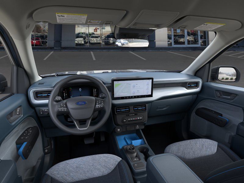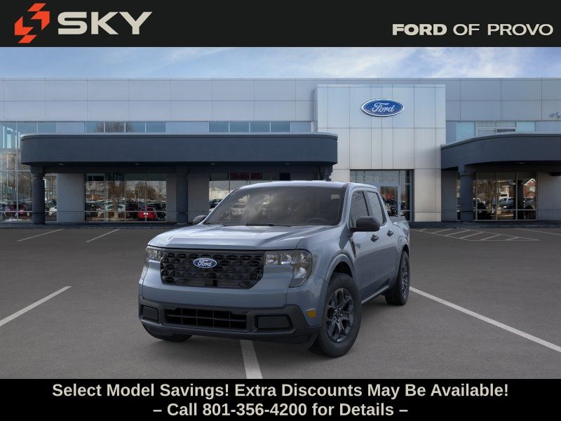 This 2026 Azure Gray Metallic Tri-Coat Ford Maverick XLT AWD is well equipped and includes these features and benefits: Equipment Group 301A (2.91 Axle Ratio, Radio: AM/FM Stereo with 6 Speakers, SiriusXM with 360L, SYNC 4 with Enhanced Voice Recognition, Unique Cloth Front Bucket Seats, and Wheels: 17" Carbonized Gray Painted Aluminum), Ford Co-Pilot360 (Auto High Beams, BLIS with Cross-Traffic Alert and Trailer Coverage, Exit Warning, Intersection Assist, Lane-Keeping System, Power Glass Manual-Folding Mirrors, Pre-Collision Assist with Automatic Emergency Braking, Rear Cross Traffic Braking, Rear Parking Sensors, and Rear-View Camera), Ford Connectivity Package (1-Year Included), Internet access capable: 5G Modem - Ford Connectivity Package, 2.5L I-4 Hybrid, 4-Wheel Disc Brakes, 6 Speakers, ABS brakes, Air Conditioning, Alloy wheels, AM/FM radio: SiriusXM with 360L, Apple CarPlay/Android Auto, Auto High-beam Headlights, Automatic temperature control, Brake assist, Bumpers: body-color, Compass, Delay-off headlights, Driver door bin, Driver vanity mirror, Dual front impact airbags, Dual front side impact airbags, Electronic Stability Control, Emergency communication system: SYNC 4 911 Assist, Exterior Parking Camera Rear, Four wheel independent suspension, Front anti-roll bar, Front Bucket Seats, Front Center Armrest, Front reading lights, Fully automatic headlights, Illuminated entry, Knee airbag, Low tire pressure warning, Occupant sensing airbag, Outside temperature display, Overhead airbag, Overhead console, Panic alarm, Passenger door bin, Passenger vanity mirror, Power door mirrors, Power steering, Power windows, Radio data system, Rear anti-roll bar, Rear seat center armrest, Rear step bumper, Remote keyless entry, Security system, Speed control, Speed-sensing steering, Steering wheel mounted audio controls, Telescoping steering wheel, Tilt steering wheel, Traction control, and Trip computer.