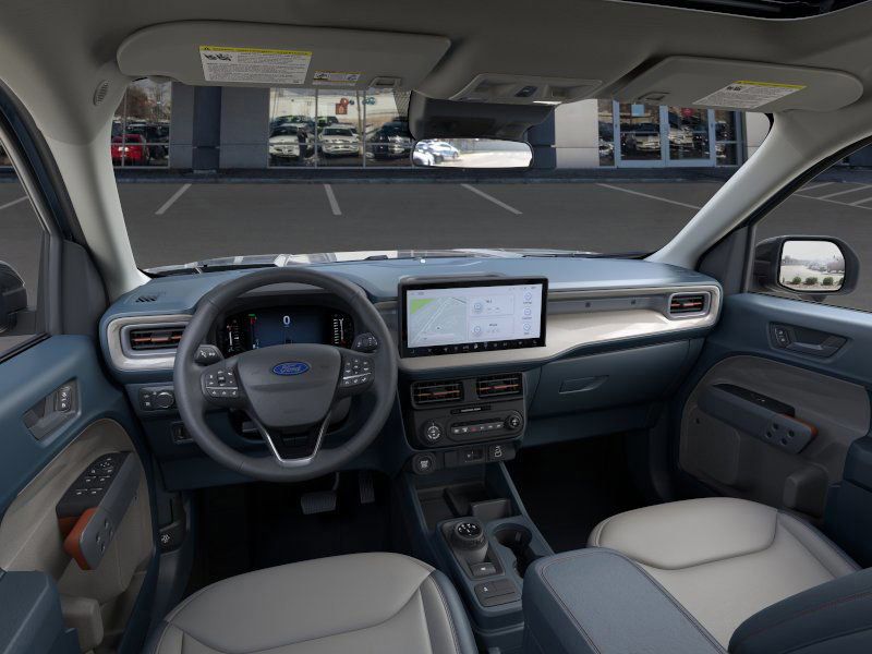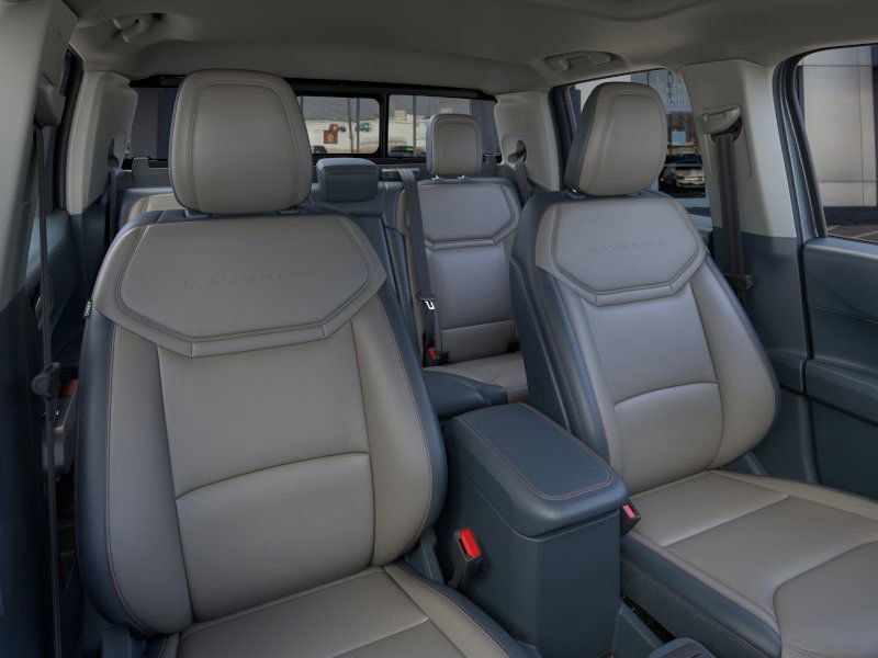 This 2026 Azure Gray Metallic Tri-Coat Ford Maverick Lariat AWD is well equipped and includes these features and benefits: Ford Connectivity Package (1-Year Included), Internet access capable: 5G Modem - Ford Connectivity Package, 2.5L I-4 Hybrid, 2.91 Axle Ratio, 4-Wheel Disc Brakes, 8 Speakers, ABS brakes, ActiveX Trimmed Heated Front Bucket Seats, Air Conditioning, Alloy wheels, AM/FM radio: SiriusXM with 360L, Apple CarPlay/Android Auto, Auto High-beam Headlights, Automatic temperature control, Brake assist, Bumpers: body-color, Compass, Delay-off headlights, Driver door bin, Driver vanity mirror, Dual front impact airbags, Dual front side impact airbags, Electronic Stability Control, Emergency communication system: SYNC 4 911 Assist, Exterior Parking Camera Rear, Four wheel independent suspension, Front anti-roll bar, Front Bucket Seats, Front Center Armrest, Front dual zone A/C, Front reading lights, Fully automatic headlights, Heated door mirrors, Heated front seats, Heated steering wheel, Illuminated entry, Knee airbag, Low tire pressure warning, Navigation system: Connected Navigation, Occupant sensing airbag, Outside temperature display, Overhead airbag, Overhead console, Panic alarm, Passenger door bin, Passenger vanity mirror, Power door mirrors, Power driver seat, Power steering, Power windows, Radio data system, Radio: B&O Sound System by Bang and Olufsen, Rear anti-roll bar, Rear seat center armrest, Rear step bumper, Remote keyless entry, Security system, SiriusXM with 360L, Speed control, Speed-sensing steering, Steering wheel mounted audio controls, SYNC 4 with Enhanced Voice Recognition, Telescoping steering wheel, Tilt steering wheel, Traction control, Trip computer, and Wheels: 19" Machined Aluminum Painted.