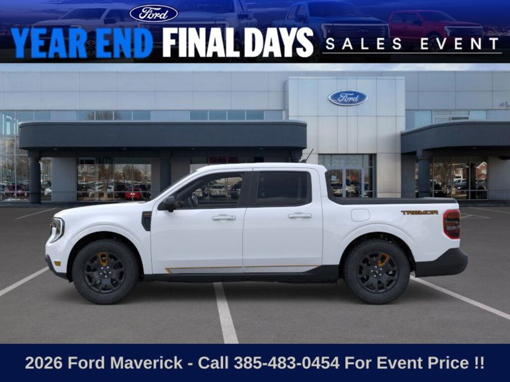 This 2026 Oxford White Ford Maverick Tremor AWD is well equipped and includes these features and benefits: Ford Connectivity Package (1-Year Included), Internet access capable: 5G Modem - Ford Connectivity Package, 3.63 Axle Ratio, 4-Wheel Disc Brakes, 8 Speakers, ABS brakes, ActiveX Trimmed Heated Front Bucket Seats, Air Conditioning, Alloy wheels, AM/FM radio: SiriusXM with 360L, Apple CarPlay/Android Auto, Auto High-beam Headlights, Automatic temperature control, Brake assist, Bumpers: body-color, Compass, Delay-off headlights, Driver door bin, Driver vanity mirror, Dual front impact airbags, Dual front side impact airbags, Electronic Stability Control, Emergency communication system: SYNC 4 911 Assist, Exterior Parking Camera Rear, Four wheel independent suspension, Front anti-roll bar, Front Bucket Seats, Front Center Armrest, Front dual zone A/C, Front reading lights, Fully automatic headlights, Heated door mirrors, Heated front seats, Heated steering wheel, Illuminated entry, Knee airbag, Low tire pressure warning, Navigation system: Connected Navigation, Occupant sensing airbag, Outside temperature display, Overhead airbag, Overhead console, Panic alarm, Passenger door bin, Passenger vanity mirror, Power door mirrors, Power driver seat, Power steering, Power windows, Radio data system, Radio: AM/FM Stereo with 8 Speakers, Rear anti-roll bar, Rear seat center armrest, Rear step bumper, Remote keyless entry, Security system, SiriusXM with 360L, Speed control, Speed-sensing steering, Steering wheel mounted audio controls, SYNC 4 with Enhanced Voice Recognition, Tachometer, Telescoping steering wheel, Tilt steering wheel, Traction control, Trip computer, and Wheels: 17" Machined-Face Tarnished Dark Painted.