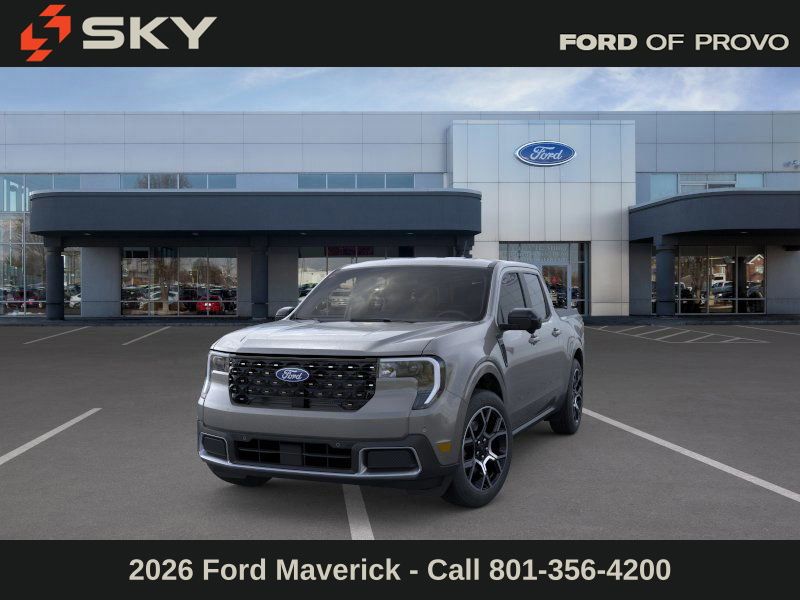This 2026 Carbonized Gray Metallic Ford Maverick Lariat AWD is well equipped and includes these features and benefits: Ford Connectivity Package (1-Year Included), Internet access capable: 5G Modem - Ford Connectivity Package, 2.5L I-4 Hybrid, 2.91 Axle Ratio, 4-Wheel Disc Brakes, 8 Speakers, ABS brakes, ActiveX Trimmed Heated Front Bucket Seats, Air Conditioning, Alloy wheels, AM/FM radio: SiriusXM with 360L, Apple CarPlay/Android Auto, Auto High-beam Headlights, Automatic temperature control, Brake assist, Bumpers: body-color, Compass, Delay-off headlights, Driver door bin, Driver vanity mirror, Dual front impact airbags, Dual front side impact airbags, Electronic Stability Control, Emergency communication system: SYNC 4 911 Assist, Exterior Parking Camera Rear, Four wheel independent suspension, Front anti-roll bar, Front Bucket Seats, Front Center Armrest, Front dual zone A/C, Front reading lights, Fully automatic headlights, Heated door mirrors, Heated front seats, Heated steering wheel, Illuminated entry, Knee airbag, Low tire pressure warning, Navigation system: Connected Navigation, Occupant sensing airbag, Outside temperature display, Overhead airbag, Overhead console, Panic alarm, Passenger door bin, Passenger vanity mirror, Power door mirrors, Power driver seat, Power steering, Power windows, Radio data system, Radio: B&O Sound System by Bang and Olufsen, Rear anti-roll bar, Rear seat center armrest, Rear step bumper, Remote keyless entry, Security system, SiriusXM with 360L, Speed control, Speed-sensing steering, Steering wheel mounted audio controls, SYNC 4 with Enhanced Voice Recognition, Telescoping steering wheel, Tilt steering wheel, Traction control, Trip computer, and Wheels: 19" Machined Aluminum Painted.