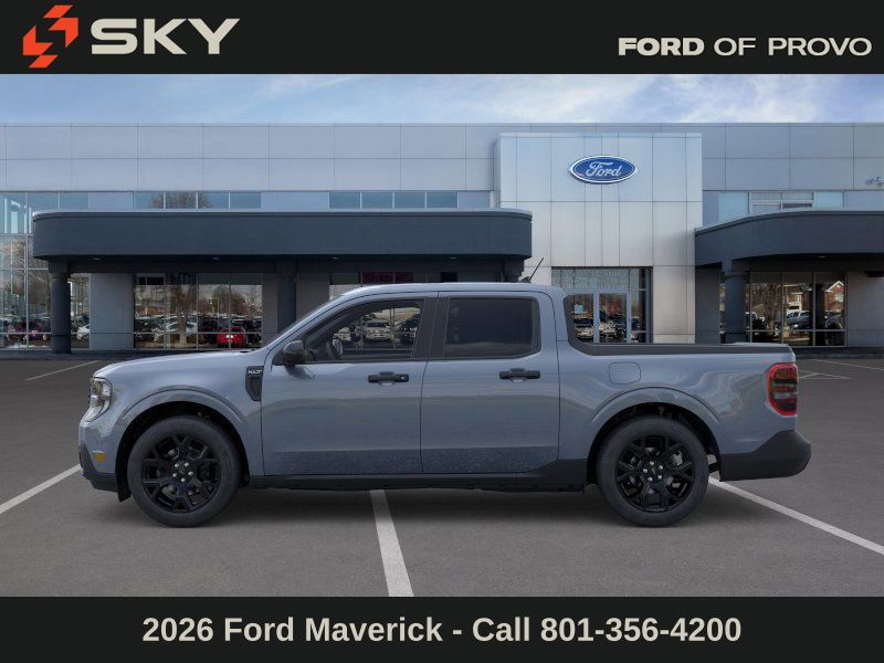 This 2026 Azure Gray Metallic Tri-Coat Ford Maverick XLT AWD is well equipped and includes these features and benefits: Ford Connectivity Package (1-Year Included), Internet access capable: 5G Modem - Ford Connectivity Package, 2.5L I-4 Hybrid, 2.91 Axle Ratio, 4-Wheel Disc Brakes, 6 Speakers, ABS brakes, Air Conditioning, Alloy wheels, AM/FM radio: SiriusXM with 360L, Apple CarPlay/Android Auto, Auto High Beams, Auto High-beam Headlights, Automatic temperature control, Brake assist, Bumpers: body-color, Compass, Delay-off headlights, Driver door bin, Driver vanity mirror, Dual front impact airbags, Dual front side impact airbags, Electronic Stability Control, Emergency communication system: SYNC 4 911 Assist, Exterior Parking Camera Rear, Four wheel independent suspension, Front anti-roll bar, Front Bucket Seats, Front Center Armrest, Front reading lights, Fully automatic headlights, Illuminated entry, Intersection Assist, Knee airbag, Lane-Keeping System, Low tire pressure warning, Occupant sensing airbag, Outside temperature display, Overhead airbag, Overhead console, Panic alarm, Passenger door bin, Passenger vanity mirror, Power door mirrors, Power steering, Power windows, Pre-Collision Assist with Automatic Emergency Braking, Radio data system, Radio: AM/FM Stereo with 6 Speakers, Rear anti-roll bar, Rear seat center armrest, Rear step bumper, Rear-View Camera, Remote keyless entry, Security system, SiriusXM with 360L, Speed control, Speed-sensing steering, Steering wheel mounted audio controls, SYNC 4 with Enhanced Voice Recognition, Telescoping steering wheel, Tilt steering wheel, Traction control, Trip computer, Unique Cloth Front Bucket Seats, and Wheels: 17" Carbonized Gray Painted Aluminum.
