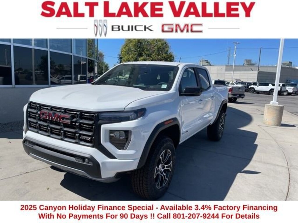 2025 GMC Canyon AT4 4D Crew Cab Summit White 2.7L I4 Turbocharged DOHC 16V LEV3-SULEV30 310hp 4WD --- Please note that the final selling price does not include tax, tag, title, documentation fees, dealer-installed options, or pricing adjustments due to market demand. Financing through GM Financial is required for all discounts to be applied. Special finance offers may not be combined with some factory incentives. While we strive for accuracy, errors may occur, so please verify all information with a customer service representative. For the most accurate pricing, call us at (801) 265-1511 or visit our dealership in person. Prices and payments are subject to change based on manufacturer incentives. - Price includes $1,500 trade in allowance program for customers that own a 2018 or newer passenger car or truck with less than 80,000 miles and trade in their vehicle towards the purchase of a new 2025-2026 Buick or GMC. Some restrictions may apply. Contact dealer for details