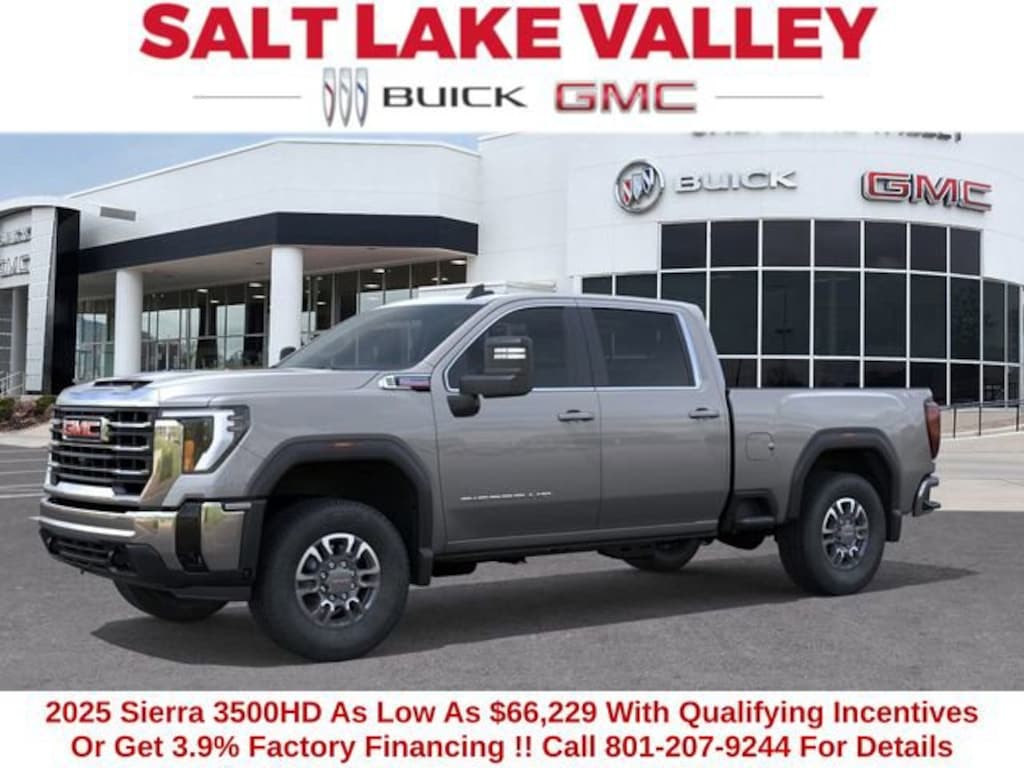 2025 GMC Sierra 3500HD SLE 4D Crew Cab Sterling Metallic Duramax 6.6L V8 Turbodiesel 4WD --- Please note that the final selling price does not include tax, tag, title, documentation fees, dealer-installed options, or pricing adjustments due to market demand. Financing through GM Financial is required for all discounts to be applied. Special finance offers may not be combined with some factory incentives. While we strive for accuracy, errors may occur, so please verify all information with a customer service representative. For the most accurate pricing, call us at (801) 265-1511 or visit our dealership in person. Prices and payments are subject to change based on manufacturer incentives. ... Sale Price may include dealer discount, $1000 - Buick & GMC Consumer Cash Program - Price includes $1,500 trade in allowance program for customers that own a 2018 or newer passenger car or truck with less than 80,000 miles and trade in their vehicle towards the purchase of a new 2025-2026 Buick or GMC. Some restrictions may apply. Contact dealer for details - Price includes $2,000 Down Payment Assistance. Must Finance with GM Financial
