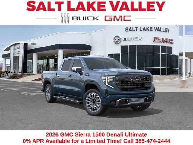 2026 GMC Sierra 1500 Denali Ultimate 4D Crew Cab Downpour Metallic EcoTec3 6.2L V8 4WD --- Please note that the final selling price does not include tax, tag, title, documentation fees, dealer-installed options, or pricing adjustments due to market demand. Financing through GM Financial is required for all discounts to be applied. Special finance offers may not be combined with some factory incentives. While we strive for accuracy, errors may occur, so please verify all information with a customer service representative. For the most accurate pricing, call us at (801) 265-1511 or visit our dealership in person. Prices and payments are subject to change based on manufacturer incentives. ... Sale Price may include dealer discount, $1750 - Buick & GMC Consumer Cash Program $3500 - GM Trade In Allowance Program $500 - Buick GMC Bonus Cash