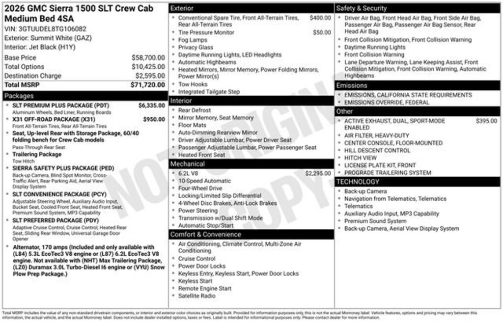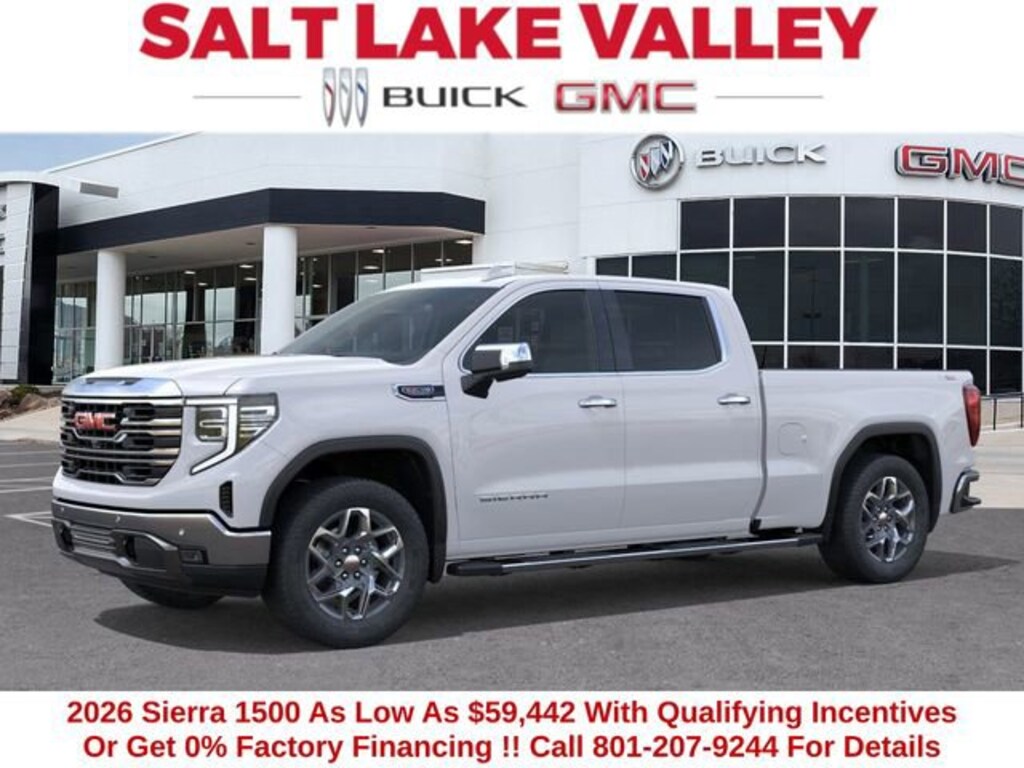 Take on every drive with confidence in the new GMC Sierra 1500 from Salt Lake Valley Buick GMC! Built for strength, style, and advanced capability, GMC delivers the perfect mix of power and precision. From city streets to Utah backroads, the Sierra 1500 is ready for anything. Contact us at 801-265-1511 today to schedule your test drive ! ---2026 GMC Sierra 1500 SLT 4D Crew Cab Summit White EcoTec3 6.2L V8 4WD --- Please note that the final selling price does not include tax, tag, title, documentation fees, dealer-installed options, or pricing adjustments due to market demand. Financing through GM Financial is required for all discounts to be applied. Special finance offers may not be combined with some factory incentives. While we strive for accuracy, errors may occur, so please verify all information with a customer service representative. For the most accurate pricing, call us at (801) 265-1511 or visit our dealership in person. Prices and payments are subject to change based on manufacturer incentives. ... Sale Price may include dealer discount, $1500 - Buick & GMC Consumer Cash Program $250 - December GMC Sales Event LD Bonus Cash $500 - GM Bonus Cash - Price includes $1,500 trade in allowance program for customers that own a 2018 or newer passenger car or truck with less than 80,000 miles and trade in their vehicle towards the purchase of a new 2025-2026 Buick or GMC. Some restrictions may apply. Contact dealer for details - Price includes $2,000 Down Payment Assistance. Must Finance with GM Financial