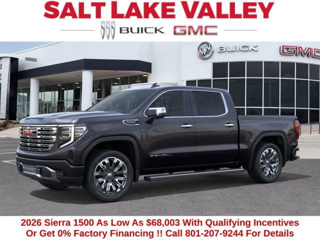 2026 GMC Sierra 1500 Denali 4D Crew Cab Titanium Rush Metallic EcoTec3 6.2L V8 4WD --- Please note that the final selling price does not include tax, tag, title, documentation fees, dealer-installed options, or pricing adjustments due to market demand. Financing through GM Financial is required for all discounts to be applied. Special finance offers may not be combined with some factory incentives. While we strive for accuracy, errors may occur, so please verify all information with a customer service representative. For the most accurate pricing, call us at (801) 265-1511 or visit our dealership in person. Prices and payments are subject to change based on manufacturer incentives. ... Sale Price may include dealer discount, $1500 - Buick & GMC Consumer Cash Program $250 - December GMC Sales Event LD Bonus Cash $500 - GM Bonus Cash - Price includes $1,500 trade in allowance program for customers that own a 2018 or newer passenger car or truck with less than 80,000 miles and trade in their vehicle towards the purchase of a new 2025-2026 Buick or GMC. Some restrictions may apply. Contact dealer for details - Price includes $2,000 Down Payment Assistance. Must Finance with GM Financial