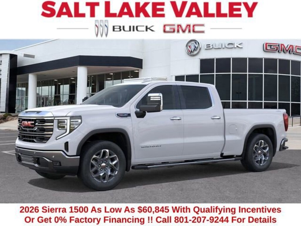 2026 GMC Sierra 1500 SLT 4D Crew Cab Summit White EcoTec3 6.2L V8 4WD --- Please note that the final selling price does not include tax, tag, title, documentation fees, dealer-installed options, or pricing adjustments due to market demand. Financing through GM Financial is required for all discounts to be applied. Special finance offers may not be combined with some factory incentives. While we strive for accuracy, errors may occur, so please verify all information with a customer service representative. For the most accurate pricing, call us at (801) 265-1511 or visit our dealership in person. Prices and payments are subject to change based on manufacturer incentives. ... Sale Price may include dealer discount, $1500 - Buick & GMC Consumer Cash Program $250 - December GMC Sales Event LD Bonus Cash $500 - GM Bonus Cash - Price includes $1,500 trade in allowance program for customers that own a 2018 or newer passenger car or truck with less than 80,000 miles and trade in their vehicle towards the purchase of a new 2025-2026 Buick or GMC. Some restrictions may apply. Contact dealer for details - Price includes $2,000 Down Payment Assistance. Must Finance with GM Financial