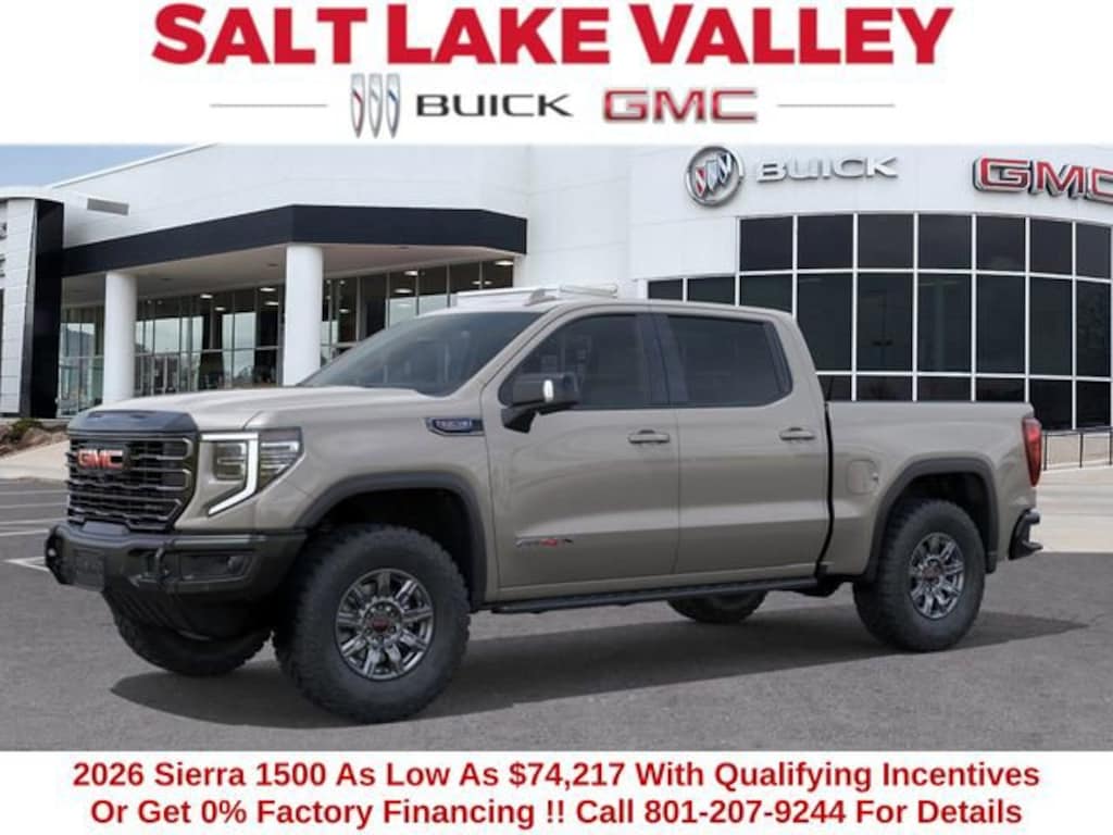 2026 GMC Sierra 1500 AT4X 4D Crew Cab Coastal Dune EcoTec3 6.2L V8 4WD --- Please note that the final selling price does not include tax, tag, title, documentation fees, dealer-installed options, or pricing adjustments due to market demand. Financing through GM Financial is required for all discounts to be applied. Special finance offers may not be combined with some factory incentives. While we strive for accuracy, errors may occur, so please verify all information with a customer service representative. For the most accurate pricing, call us at (801) 265-1511 or visit our dealership in person. Prices and payments are subject to change based on manufacturer incentives. ... Sale Price may include dealer discount, $1500 - Buick & GMC Consumer Cash Program $250 - December GMC Sales Event LD Bonus Cash $500 - GM Bonus Cash - Price includes $1,500 trade in allowance program for customers that own a 2018 or newer passenger car or truck with less than 80,000 miles and trade in their vehicle towards the purchase of a new 2025-2026 Buick or GMC. Some restrictions may apply. Contact dealer for details - Price includes $2,000 Down Payment Assistance. Must Finance with GM Financial