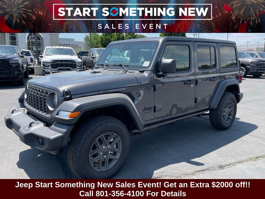 Adventure starts here with the new Jeep Wrangler, available now at Sky CDJR of Provo! As your local Jeep dealership near Salt Lake City, we know how to match Utah drivers with legendary 4x4 capability and open-road freedom. Whether itâs mountain trails or desert drives, the Wrangler is ready to take you there. Call 801-356-4100 today to start your next adventure! Granite Crystal Metallic Clearcoat 2025 Jeep Wrangler Sport S 4WD 8-Speed Automatic 3.6L V6 24V VVT