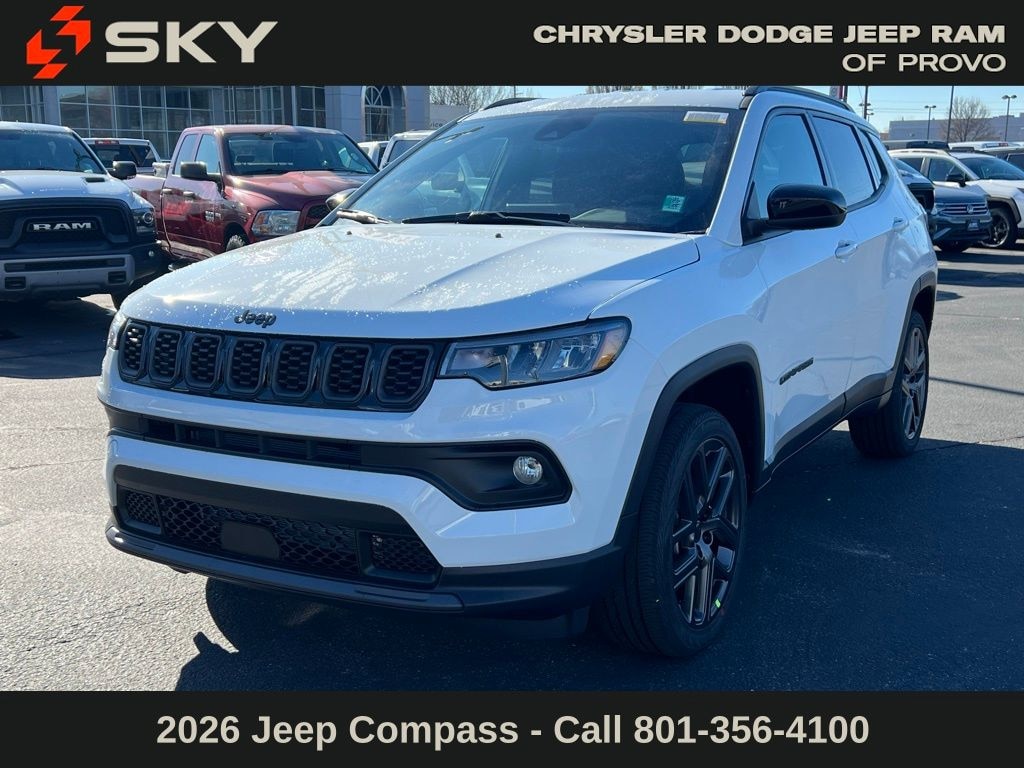 Adventure starts here with the new Jeep Compass, available now at Sky CDJR of Provo! As your local Jeep dealership near Salt Lake City, we know how to match Utah drivers with legendary 4x4 capability and open-road freedom. Whether itâs mountain trails or desert drives, the Compass is ready to take you there. Call 801-356-4100 today to start your next adventure! Bright White Clearcoat 2026 Jeep Compass Latitude 4WD 8-Speed Automatic 2.0L I4 DOHC 4WD.
