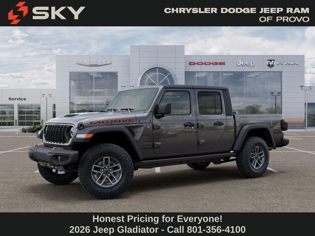 Adventure starts here with the new Jeep Gladiator, available now at Sky CDJR of Provo! As your local Jeep dealership near Salt Lake City, we know how to match Utah drivers with legendary 4x4 capability and open-road freedom. Whether itâs mountain trails or desert drives, the Gladiator is ready to take you there. Call 801-356-4100 today to start your next adventure! Granite Crystal Metallic Clearcoat 2026 Jeep Gladiator Mojave 4WD 8-Speed Automatic 3.6L V6 24V VVT