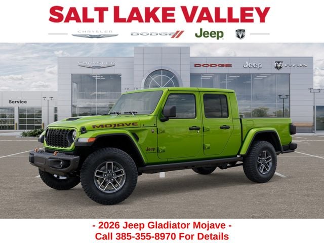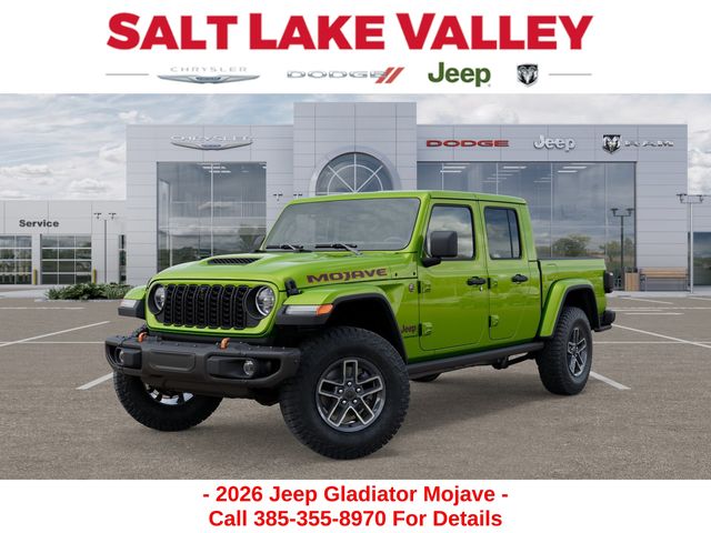 Adventure starts with the new Jeep Gladiator available now at Salt Lake Valley CDJR in Salt Lake City! Built for Utahâs canyons, trails, and highways alike, Jeep delivers freedom and capability in every mile. Discover why Gladiator drivers love to explore with confidence. Contact us at 801-484-8755 to schedule a time to see it today! 2026 Jeep Gladiator Mojave Mojito 3.6L V6 24V VVT