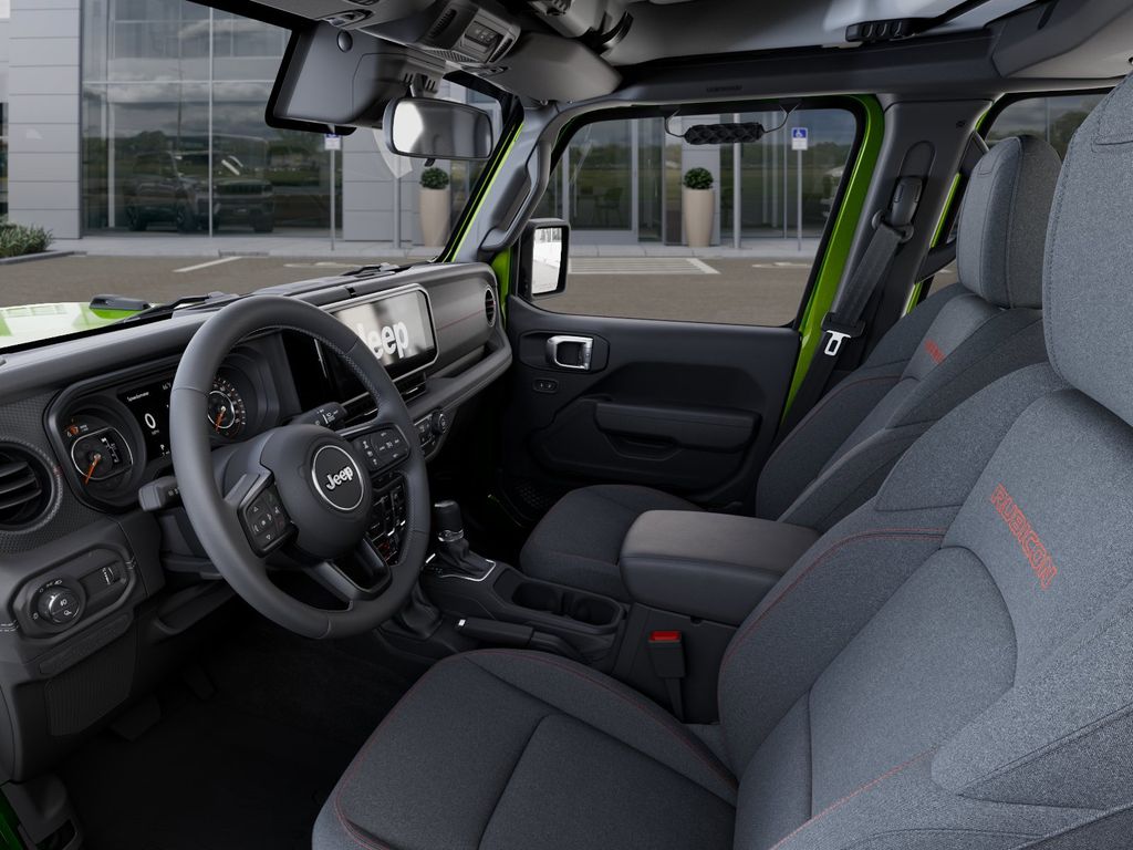 Convenience Group (Heated Front Seats, Heated Steering Wheel, Remote Start System, and Universal Garage Door Opener), Quick Order Package 24R Rubicon, Steel Power Dome Hood Package (Power Dome Dual Vented Hood), 110 Mph Vehicle Max Speed Calibration, 12.3" Touchscreen Display, 4-Wheel Disc Brakes, 4.10 Rear Axle Ratio, 4G LTE Wi-Fi Hot Spot, 8 Speakers, ABS brakes, Air Conditioning, Alexa Built-in, Alloy wheels, AM/FM radio: SiriusXM with 360L, Apple CarPlay, Apple CarPlay/Android Auto, Automatic temperature control, Black 3-Piece Hard Top, Brake assist, Cloth Low-Back Bucket Seats, Compass, Connectivity - US/Canada, Delay-off headlights, Driver door bin, Driver vanity mirror, Dual front impact airbags, Dual front side impact airbags, Electronic Stability Control, Emergency communication system: Jeep Connect, For Details, Visit DriveUconnect.com, Freedom Panel Storage Bag, Front anti-roll bar, Front Bucket Seats, Front Center Armrest w/Storage, Front dual zone A/C, Front fog lights, Front License Plate Bracket, Front reading lights, Fully automatic headlights, Google Android Auto, Heated door mirrors, Illuminated entry, Integrated Center Stack Radio, Integrated roll-over protection, Low tire pressure warning, MOPAR All-Weather Slush Mats, MOPAR Spray in Bedliner, Occupant sensing airbag, Outside temperature display, Overhead airbag, Panic alarm, Passenger door bin, Passenger vanity mirror, Performance Suspension, Power door mirrors, Power steering, Power windows, Radio data system, Radio: Uconnect 5 with 12.3" Display, Rear anti-roll bar, Rear reading lights, Rear Sliding Window, Rear Window Defroster, Remote keyless entry, Security system, SiriusXM Radio Service, SiriusXM with 360L, Speed control, Split folding rear seat, Steering wheel mounted audio controls, Tachometer, Telescoping steering wheel, Tilt steering wheel, Traction control, Trip computer, USB Host Flip, Variably intermittent wipers, Voltmeter, and Wheels: 17" x 7.5" Machined/Painted BlacK. Price may include: $1000 - 2026 National Retail Bonus Cash . Exp. 04/30/2026
