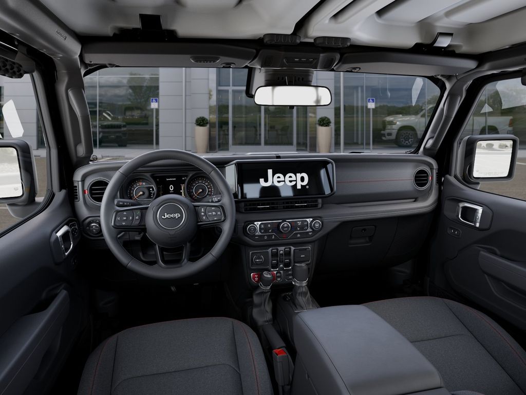 Convenience Group (Heated Front Seats, Heated Steering Wheel, Remote Start System, and Universal Garage Door Opener), Quick Order Package 24R Rubicon, Steel Power Dome Hood Package (Power Dome Dual Vented Hood), 110 Mph Vehicle Max Speed Calibration, 12.3" Touchscreen Display, 4-Wheel Disc Brakes, 4.10 Rear Axle Ratio, 4G LTE Wi-Fi Hot Spot, 8 Speakers, ABS brakes, Air Conditioning, Alexa Built-in, Alloy wheels, AM/FM radio: SiriusXM with 360L, Apple CarPlay, Apple CarPlay/Android Auto, Automatic temperature control, Black 3-Piece Hard Top, Brake assist, Cloth Low-Back Bucket Seats, Compass, Connectivity - US/Canada, Delay-off headlights, Driver door bin, Driver vanity mirror, Dual front impact airbags, Dual front side impact airbags, Electronic Stability Control, Emergency communication system: Jeep Connect, For Details, Visit DriveUconnect.com, Freedom Panel Storage Bag, Front anti-roll bar, Front Bucket Seats, Front Center Armrest w/Storage, Front dual zone A/C, Front fog lights, Front License Plate Bracket, Front reading lights, Fully automatic headlights, Google Android Auto, Heated door mirrors, Illuminated entry, Integrated Center Stack Radio, Integrated roll-over protection, Low tire pressure warning, MOPAR All-Weather Slush Mats, MOPAR Spray in Bedliner, Occupant sensing airbag, Outside temperature display, Overhead airbag, Panic alarm, Passenger door bin, Passenger vanity mirror, Performance Suspension, Power door mirrors, Power steering, Power windows, Radio data system, Radio: Uconnect 5 with 12.3" Display, Rear anti-roll bar, Rear reading lights, Rear Sliding Window, Rear Window Defroster, Remote keyless entry, Security system, SiriusXM Radio Service, SiriusXM with 360L, Speed control, Split folding rear seat, Steering wheel mounted audio controls, Tachometer, Telescoping steering wheel, Tilt steering wheel, Traction control, Trip computer, USB Host Flip, Variably intermittent wipers, Voltmeter, and Wheels: 17" x 7.5" Machined/Painted BlacK. Price may include: $1000 - 2026 National Retail Bonus Cash . Exp. 04/30/2026