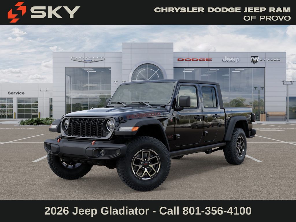 Adventure starts here with the new Jeep Gladiator, available now at Sky CDJR of Provo! As your local Jeep dealership near Salt Lake City, we know how to match Utah drivers with legendary 4x4 capability and open-road freedom. Whether itâs mountain trails or desert drives, the Gladiator is ready to take you there. Call 801-356-4100 today to start your next adventure! Black Clearcoat 2026 Jeep Gladiator Rubicon 4WD 8-Speed Automatic 3.6L V6 24V VVT
