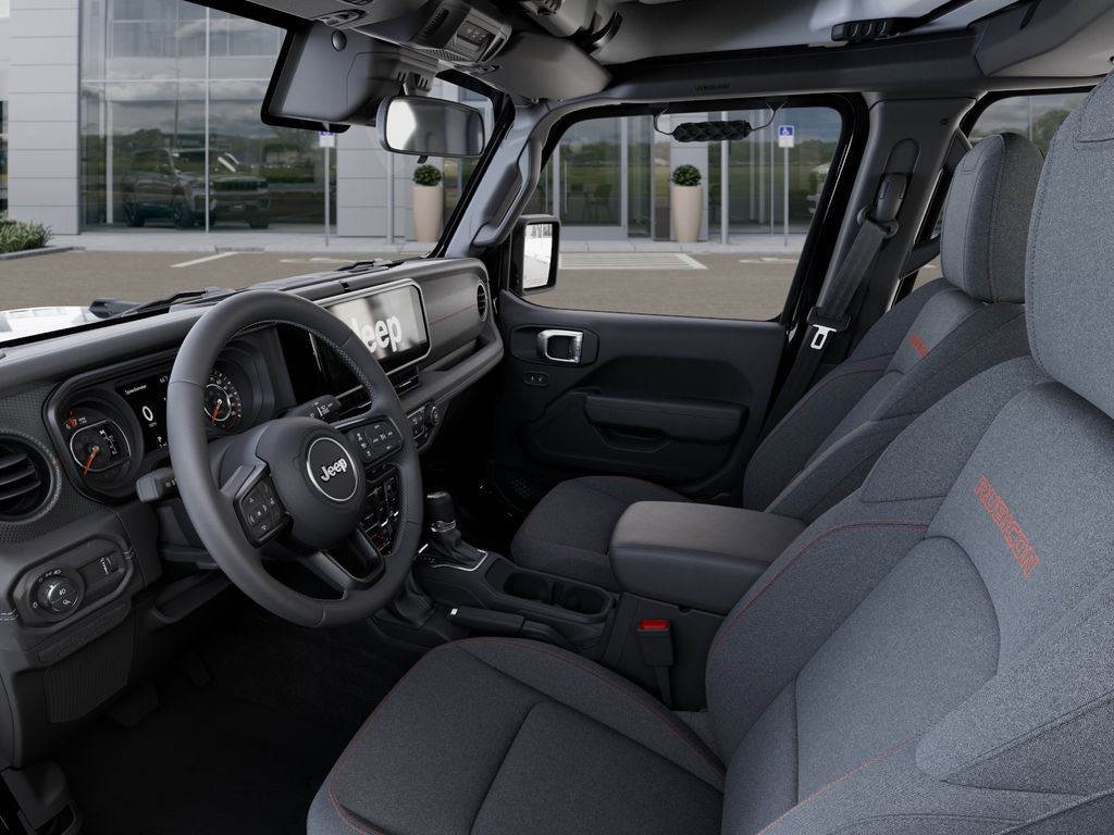 Convenience Group (Heated Front Seats, Heated Steering Wheel, Remote Start System, and Universal Garage Door Opener), Quick Order Package 24R Rubicon, Steel Power Dome Hood Package (Power Dome Dual Vented Hood), 110 Mph Vehicle Max Speed Calibration, 12.3" Touchscreen Display, 4-Wheel Disc Brakes, 4.10 Rear Axle Ratio, 4G LTE Wi-Fi Hot Spot, 8 Speakers, ABS brakes, Air Conditioning, Alexa Built-in, Alloy wheels, AM/FM radio: SiriusXM with 360L, Apple CarPlay, Apple CarPlay/Android Auto, Automatic temperature control, Black 3-Piece Hard Top, Brake assist, Cloth Low-Back Bucket Seats, Compass, Connectivity - US/Canada, Delay-off headlights, Driver door bin, Driver vanity mirror, Dual front impact airbags, Dual front side impact airbags, Electronic Stability Control, Emergency communication system: Jeep Connect, For Details, Visit DriveUconnect.com, Freedom Panel Storage Bag, Front anti-roll bar, Front Bucket Seats, Front Center Armrest w/Storage, Front dual zone A/C, Front fog lights, Front License Plate Bracket, Front reading lights, Fully automatic headlights, Google Android Auto, Heated door mirrors, Illuminated entry, Integrated Center Stack Radio, Integrated roll-over protection, Low tire pressure warning, MOPAR All-Weather Slush Mats, MOPAR Spray in Bedliner, Occupant sensing airbag, Outside temperature display, Overhead airbag, Panic alarm, Passenger door bin, Passenger vanity mirror, Performance Suspension, Power door mirrors, Power steering, Power windows, Radio data system, Radio: Uconnect 5 with 12.3" Display, Rear anti-roll bar, Rear reading lights, Rear Sliding Window, Rear Window Defroster, Remote keyless entry, Security system, SiriusXM Radio Service, SiriusXM with 360L, Speed control, Split folding rear seat, Steering wheel mounted audio controls, Tachometer, Telescoping steering wheel, Tilt steering wheel, Traction control, Trip computer, USB Host Flip, Variably intermittent wipers, Voltmeter, and Wheels: 17" x 7.5" Machined/Painted BlacK. Price may include: $1,500 trade in allowance program for customers that own a 2018 or newer passenger car or truck with less than 80,000 miles and trade in their vehicle towards the purchase of a new vehicle. Some restrictions may apply. Contact dealer for details. ...Sale price includes a $2,000 conditional finance discount. To qualify, customer must finance or lease through Chrysler Capital. Factory-subsidized interest rate loans are not eligible. If customer does not finance or lease through Chrysler Capital, the $2,000 finance discount will not apply and sale price will increase by $2,000. Some restrictions may apply. See dealer for details.