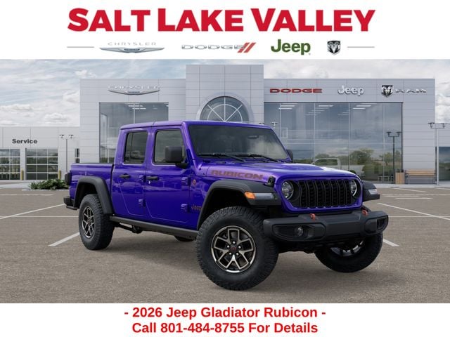 Adventure starts with the new Jeep Gladiator available now at Salt Lake Valley CDJR in Salt Lake City! Built for Utahâs canyons, trails, and highways alike, Jeep delivers freedom and capability in every mile. Discover why Gladiator drivers love to explore with confidence. Contact us at 801-484-8755 to schedule a time to see it today! 2026 Jeep Gladiator Rubicon reign 3.6L V6 24V VVT
