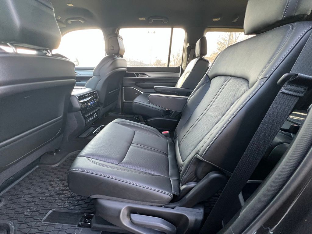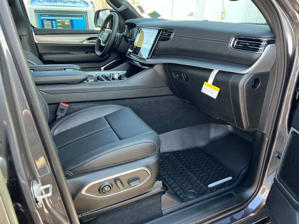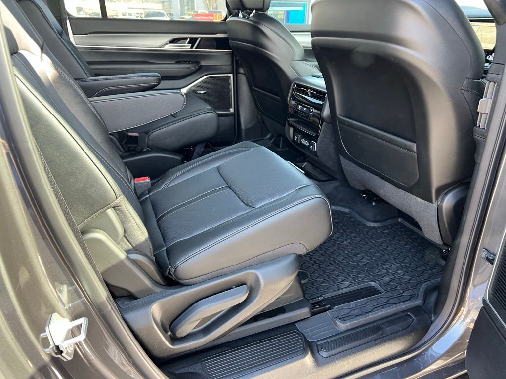 Altitude Appearance Package, HD Trailer Tow Package (Adjustable Roof Rail Crossbars, Blind Spot with Trailer Detection, Elec Rear Limited Slip Differential, Removable Rear Tow Hooks, Selec-Speed Control, Trailer Brake Control, Trailer Hitch Zoom, Trailer Light Monitoring, and Vapor Tow Hooks), MOPAR Interior Protection Package (All-Season Floor Mats and Cargo Tray), Quick Order Package 29X Altitude (Black Exterior Accents, Titanium Daylight Opening Upper, Titanium Upper Grille Applique, and Wheels: 20" x 9.0" Aluminum Painted), 118 MPH Maximum Speed Calibration, 3rd row seats: bench, 4-Wheel Disc Brakes, 9 Speakers, ABS brakes, Air Conditioning, Alloy wheels, AM/FM radio: SiriusXM with 360L, Anti-whiplash front head restraints, Apple CarPlay/Android Auto, Audio memory, Auto Adjust in Reverse Exterior Mirrors, Auto High-beam Headlights, Auto-dimming door mirrors, Auto-Dimming Exterior Driver Mirror, Auto-dimming Rear-View mirror, Auto-leveling suspension, Automatic temperature control, Brake assist, Bumpers: body-color, Compass, Delay-off headlights, Driver door bin, Driver vanity mirror, Driver's Seat Mounted Armrest, Dual front impact airbags, Dual front side impact airbags, Electronic Stability Control, Emergency communication system: Jeep Connect, Exterior Mirrors Approach Lamps, Exterior Mirrors with Memory, Exterior Mirrors with Supplemental Signals, Exterior Parking Camera Rear, Four wheel independent suspension, Front anti-roll bar, Front Bucket Seats, Front Center Armrest w/Storage, Front dual zone A/C, Front fog lights, Front reading lights, Fully automatic headlights, Garage door transmitter, Heated door mirrors, Heated Exterior Mirrors, Heated front seats, Heated rear seats, Heated steering wheel, Illuminated entry, Knee airbag, Leather Trimmed Bucket Seats, Low tire pressure warning, Memory seat, Navigation System, Normal Duty Suspension, Occupant sensing airbag, Outside temperature display, Overhead airbag, Overhead console, Panic alarm, Passenger door bin, Passenger seat mounted armrest, Passenger vanity mirror, Power door mirrors, Power driver seat, Power Liftgate, Power passenger seat, Power steering, Power windows, Radio data system, Radio: Uconnect 5 Nav with 12" Display, Rain sensing wipers, Rear air conditioning, Rear anti-roll bar, Rear reading lights, Rear seat center armrest, Rear window defroster, Rear window wiper, Reclining 3rd row seat, Remote keyless entry, Security system, Speed control, Speed-sensing steering, Speed-Sensitive Wipers, Split folding rear seat, Steering wheel memory, Steering wheel mounted audio controls, Tachometer, Telescoping steering wheel, Tilt steering wheel, Traction control, Trip computer, Turn signal indicator mirrors, Variably intermittent wipers, Ventilated front seats, Voltmeter, and Wheels: 20" x 9.0" Machine Face Painted Aluminum. Price may include: $1,500 trade in allowance program for customers that own a 2018 or newer passenger car or truck with less than 80,000 miles and trade in their vehicle towards the purchase of a new vehicle. Some restrictions may apply. Contact dealer for details. ...Sale price includes a $2,000 conditional finance discount. To qualify, customer must finance or lease through Chrysler Capital. Factory-subsidized interest rate loans are not eligible. If customer does not finance or lease through Chrysler Capital, the $2,000 finance discount will not apply and sale price will increase by $2,000. Some restrictions may apply. See dealer for details.