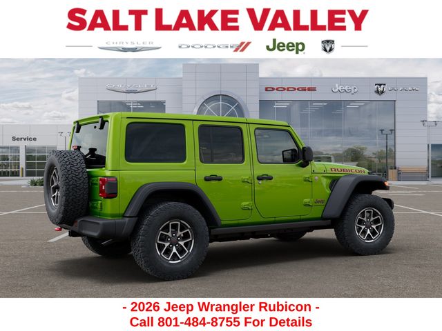 Adventure starts with the new Jeep Wrangler available now at Salt Lake Valley CDJR in Salt Lake City! Built for Utahâs canyons, trails, and highways alike, Jeep delivers freedom and capability in every mile. Discover why Wrangler drivers love to explore with confidence. Contact us at 801-484-8755 to schedule a time to see it today! 2026 Jeep Wrangler Rubicon Mojito Clearcoat 3.6L V6 24V VVT