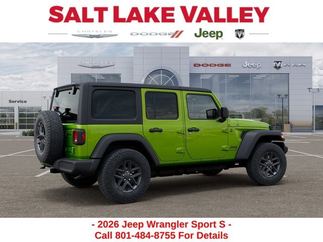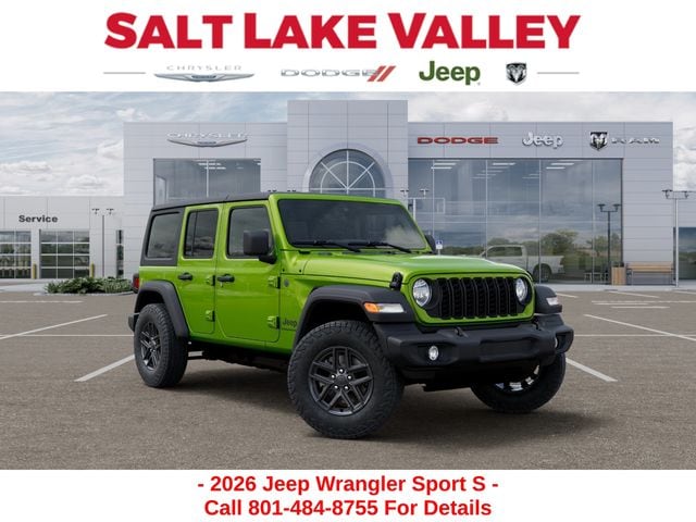 Adventure starts with the new Jeep Wrangler available now at Salt Lake Valley CDJR in Salt Lake City! Built for Utahâs canyons, trails, and highways alike, Jeep delivers freedom and capability in every mile. Discover why Wrangler drivers love to explore with confidence. Contact us at 801-484-8755 to schedule a time to see it today! 2026 Jeep Wrangler Sport S Mojito Clearcoat 2.0L I4 DOHC