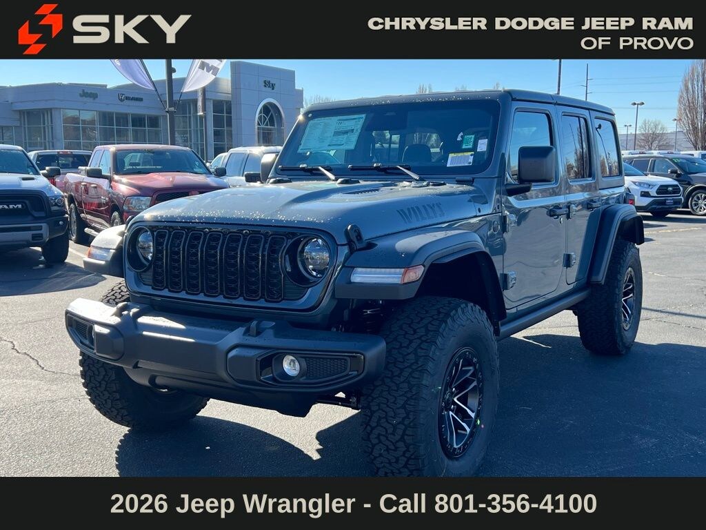 Adventure starts here with the new Jeep Wrangler, available now at Sky CDJR of Provo! As your local Jeep dealership near Salt Lake City, we know how to match Utah drivers with legendary 4x4 capability and open-road freedom. Whether itâs mountain trails or desert drives, the Wrangler is ready to take you there. Call 801-356-4100 today to start your next adventure! Anvil Clear Coat 2026 Jeep Wrangler Willys 4WD 8-Speed Automatic 3.6L V6 24V VVT