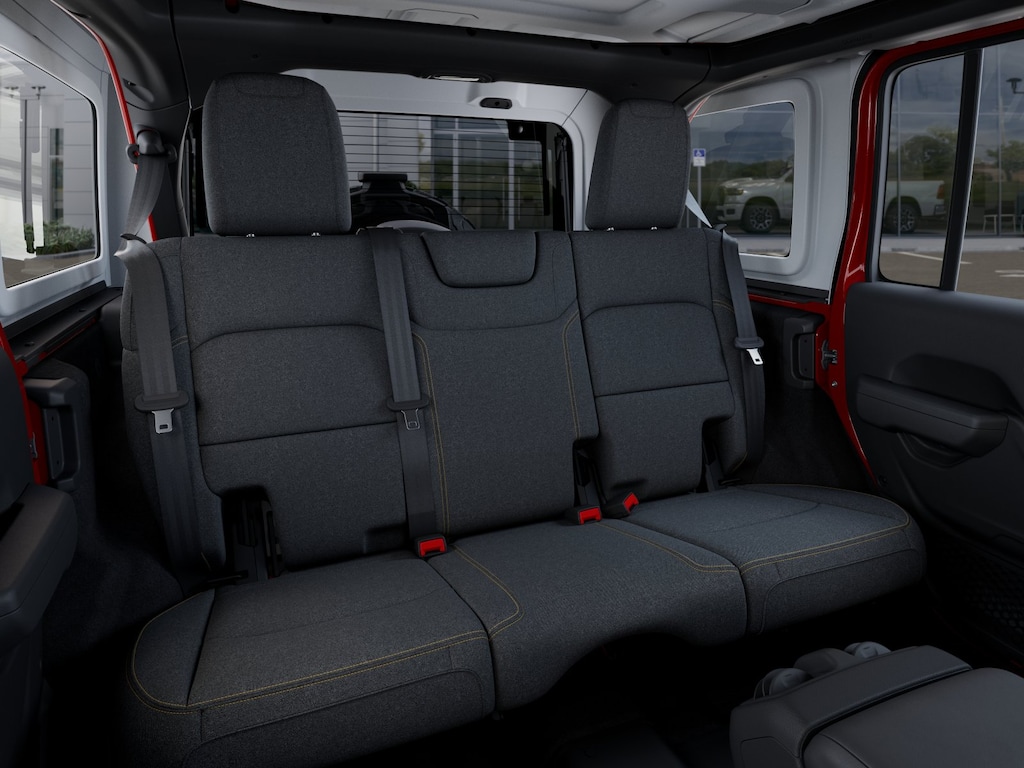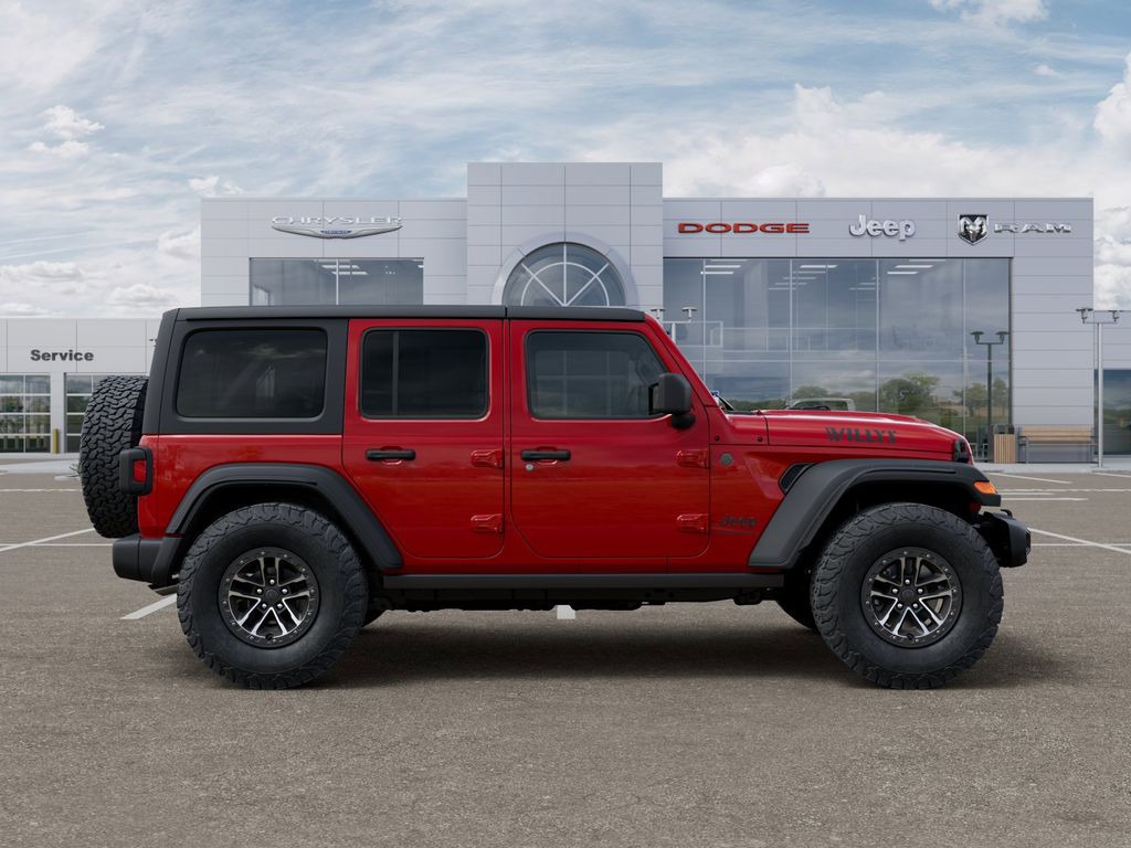 Convenience Group (2-Door Passive Entry, Front Door Locks, Air Conditioning with Auto Temp Control, Air Filtering, Cluster 7.0" TFT Color Display, Emergency/Assistance Call, Heated Front Seats, Heated Steering Wheel, and Universal Garage Door Opener), Quick Order Package 24W Willys (4-Wheel Drive Swing Gate Decal, 7 and 4 Pin Wiring Harness, Advanced Brake Assist, Automatic Headlamps, Auxiliary Switches, Black Grille with Gloss Black Rings, Class II Receiver Hitch, Conventional Differential Front Axle, Corning Gorilla Glass, Dana M210 Wide HD Tube Front Axle, Dana M220 Wide Rear Axle, Daytime Running Lamps LED Accents, Deep Tint Sunscreen Windows, E-Locker Rear Axle, Enhanced Adaptive Cruise Control, Front LED Fog Lamps, Full Speed Forward Collision Warning Plus, Increased Travel Export Tuned Suspension, Injection Molded Black Rear Bumper, LED Premium Reflector Headlamps, Mold in Color Bumper with Gloss Black, Molded in Color Rubicon Highline Flare, MOPAR All-Weather Floor Mats, Off-Road Plus Mode, Power Heated Mirrors, Premium Wrapped Steering Wheel, Security Alarm, Sun Visors with Illuminated Vanity Mirrors, Wheels: 17" x 7.5" Painted Black, and Willys Hood Decal), Steel Power Dome Hood Package (Power Dome Dual Vented Hood), Xtreme 35 Tire Package (35" Tire Suspension, Anti-Lock 4-Wheel Disc Perf Brakes, MOPAR Hinge-Gate Reinforcement, MOPAR Jack Spacer, MOPAR Tire Relocation Kit, Wheel Flare Extensions, and Wheels: 17" x 8" Machined with Black Pockets), 12.3" Touchscreen Display, 4-Wheel Disc Brakes, 4G LTE Wi-Fi Hot Spot, 8 Speakers, ABS brakes, Air Conditioning, AM/FM radio: SiriusXM with 360L, Apple CarPlay, Apple CarPlay/Android Auto, Aux Battery, Black 3-Piece Hard Top, Brake assist, Compass, Connectivity - US/Canada, Delay-off headlights, Driver door bin, Driver vanity mirror, Dual front impact airbags, Dual front side impact airbags, Electronic Stability Control, For More Info, Call 800-643-2112, Freedom Panel Storage Bag, Front anti-roll bar, Front Bucket Seats, Front Center Armrest w/Storage, Front fog lights, Front reading lights, Google Android Auto, Illuminated entry, Integrated Center Stack Radio, Integrated roll-over protection, Low tire pressure warning, No Soft Top, Non-Lock Fuel Cap Without Discriminator, Normal Duty Suspension, Occupant sensing airbag, Outside temperature display, Overhead airbag, Panic alarm, ParkView Rear Back-Up Camera, Passenger door bin, Passenger vanity mirror, Power steering, Power windows, Radio data system, Radio: Uconnect 5 with 12.3" Display, Rear anti-roll bar, Rear reading lights, Rear Window Defroster, Rear Window Wiper/Washer, Remote keyless entry, SiriusXM Radio Service, SiriusXM with 360L, Speed control, Split folding rear seat, Steering wheel mounted audio controls, Stop-Start Dual Battery System, Tachometer, Telescoping steering wheel, Tilt steering wheel, Traction control, Trip computer, Variably intermittent wipers, and Wheels: 17" x 7.5" Black Steel Styled.